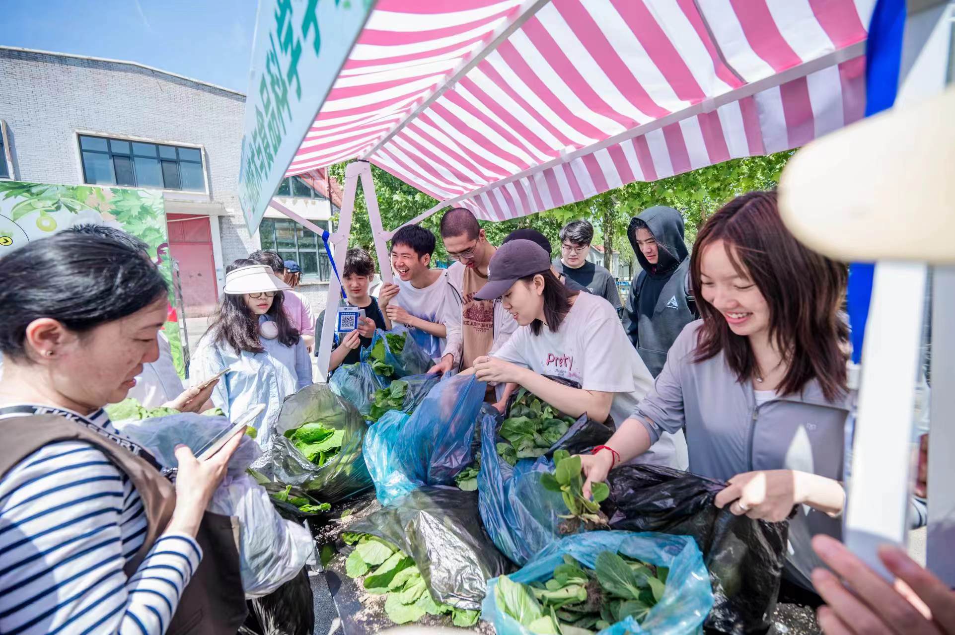 集体劳动期间,同学们弯腰俯身采摘新鲜的小白菜、菠菜、油菜和萝卜等时令蔬菜,并合力将蔬菜运送至集市摊位。各学院充分发挥创意,推出“限时特惠go go go”“来~来菜”等生动口号,吸引了众多师生驻足购买。据统计,本次集市累计销售新鲜蔬菜近2500公斤。