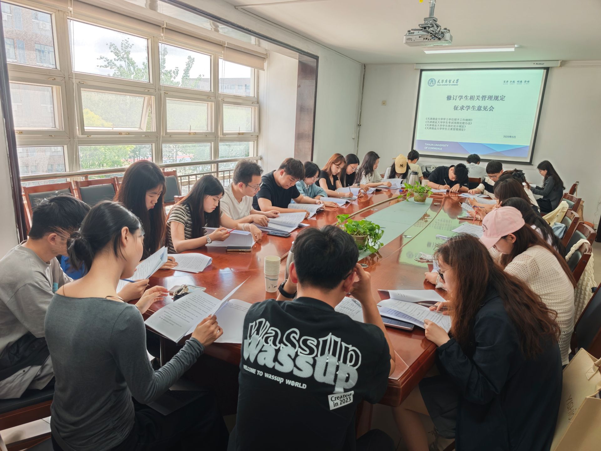 学生处、教学质量保障中心在前期组织专题研讨,广泛征求学院教师代表、职能处室意见建议的基础上,对《学士学位授予工作细则》《学生考试违规处理办法》《学生违纪处分规定》《学生公寓管理规定》四项文件进行系统梳理和全面修订,形成本次征求意见稿。会上,学生代表对上述四项文件逐一审阅,并结合自身学习生活实际,就其中的学位授予条件、违纪处理条款、公寓管理细则等条款提出了28条意见建议。