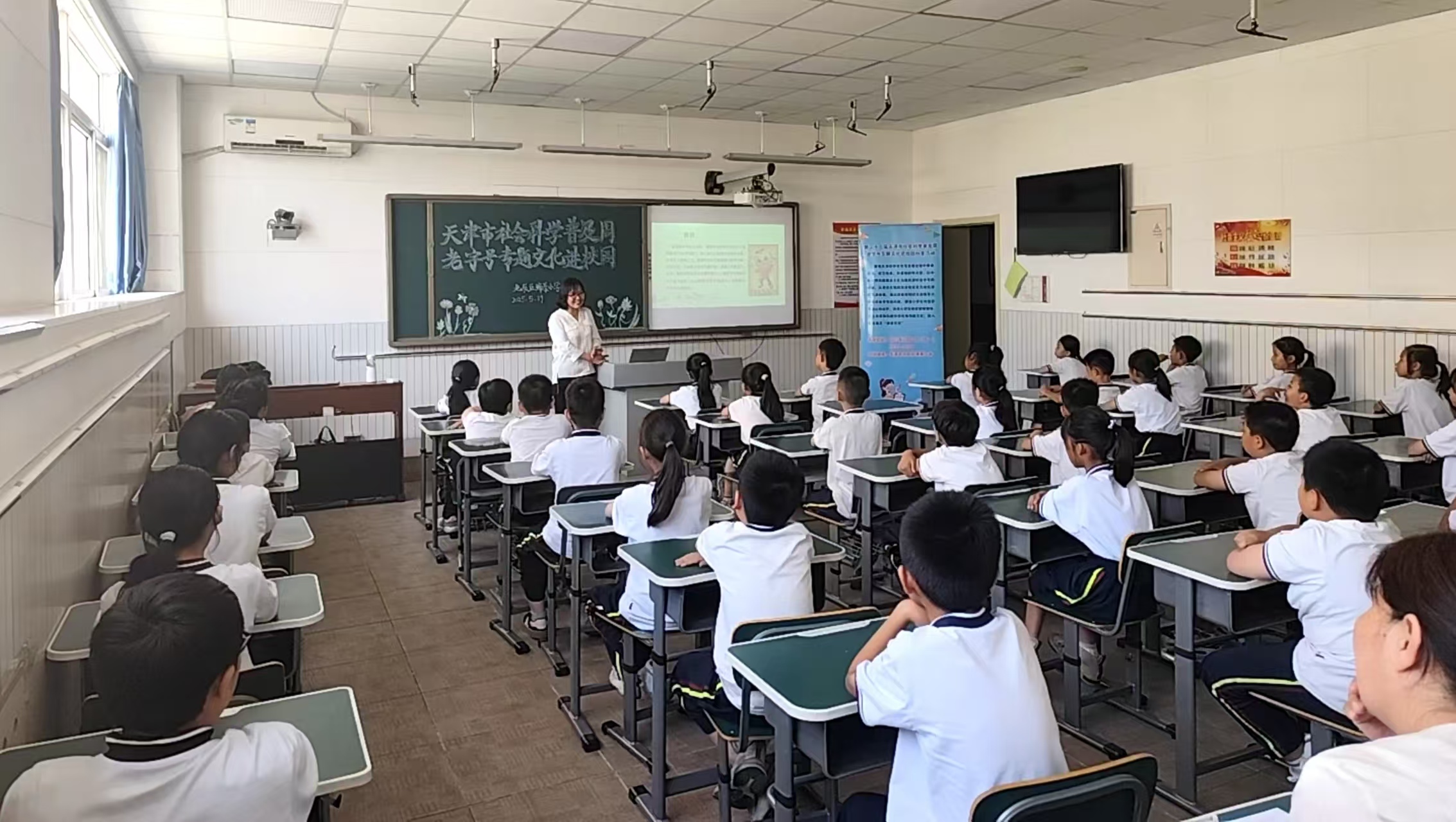 第二十三届天津市社会科学普及周活动——老字号专题文化进校园科普活动于5月19日在天津市北辰区瑞景小学成功举行。老字号专题文化进校园科普活动由beat365英国官方网站老字号协同创新中心天津市社会科学普及基地携手天津市北辰区瑞景小学举办,以“天津老字号的古往今来”为主题,通过现场开展老字号专题文化讲座及科普互动激发小学生对老字号的兴趣,增强小学生对老字号的认知水平,培养小学生科学探索精神,深入宣传推介“津派文化”,大力传承和弘扬中华优秀传统文化。瑞景小学三年级40名学生代表在现场参与了活动,其余三年级学生通过线上直播的方式在教室里收看了讲座。