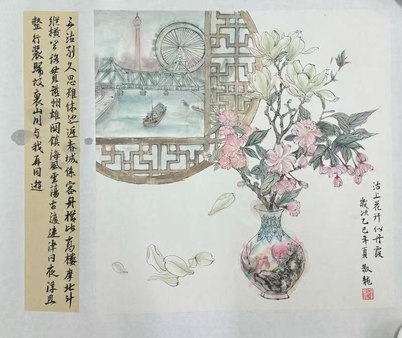 日前,艺术学院国画专业的同学们用手中画笔,描绘出一幅幅展现城市魅力的灿烂画卷,助力天津“十项行动”,表达对求学城市的热爱。