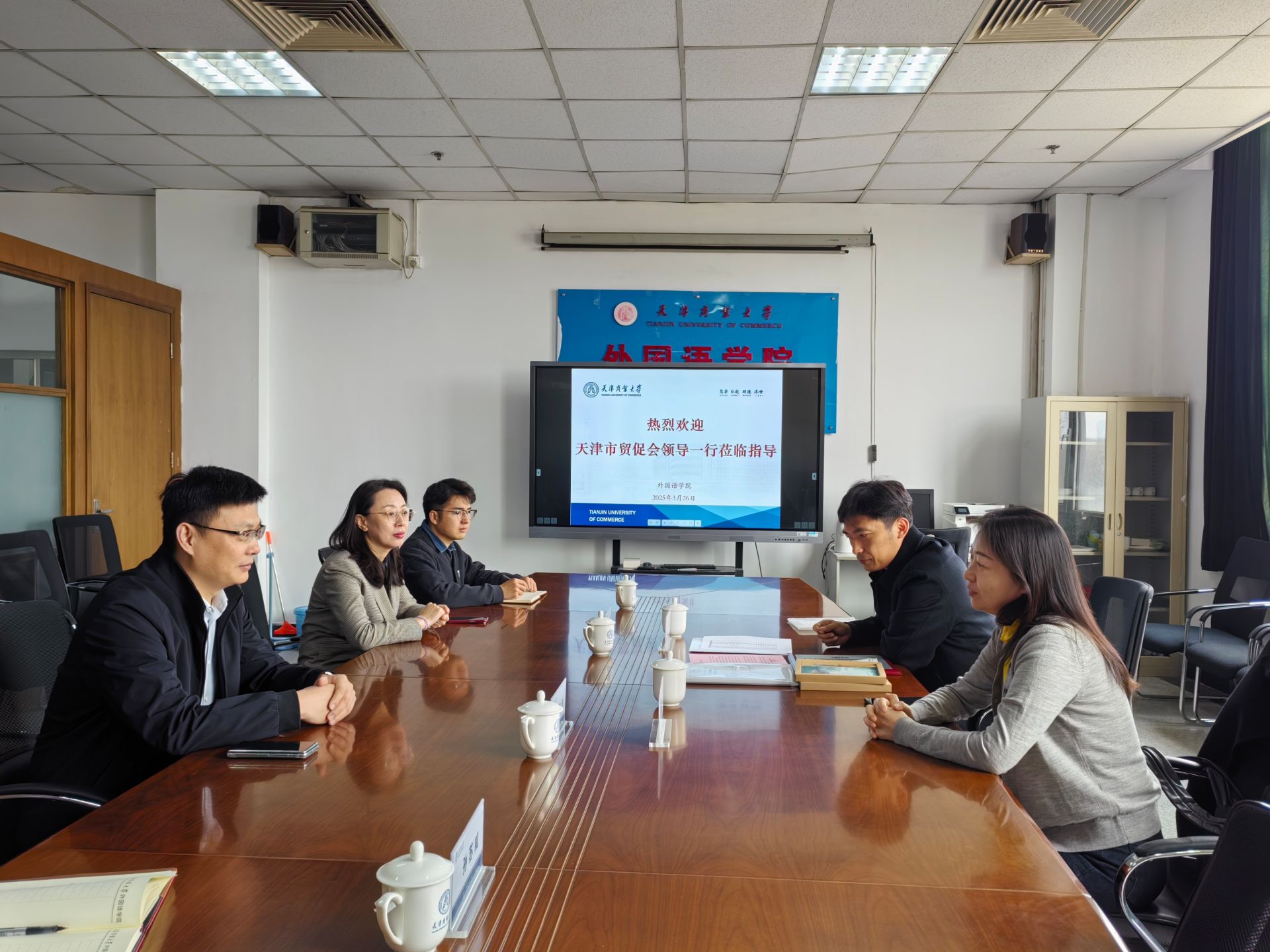 3月26日,中国国际贸易促进委员会天津市分会商法中心主任蔡颖一行到访beat365官网,就学校35名学生在第二十届中国会展经济国际合作论坛提供的高质量志愿服务,表达诚挚谢意,并发来感谢信。外国语学院党委书记刘桂涛、党委副书记孟凡荣及相关教师出席会议,双方围绕志愿服务、人才培养等议题展开深入探讨。