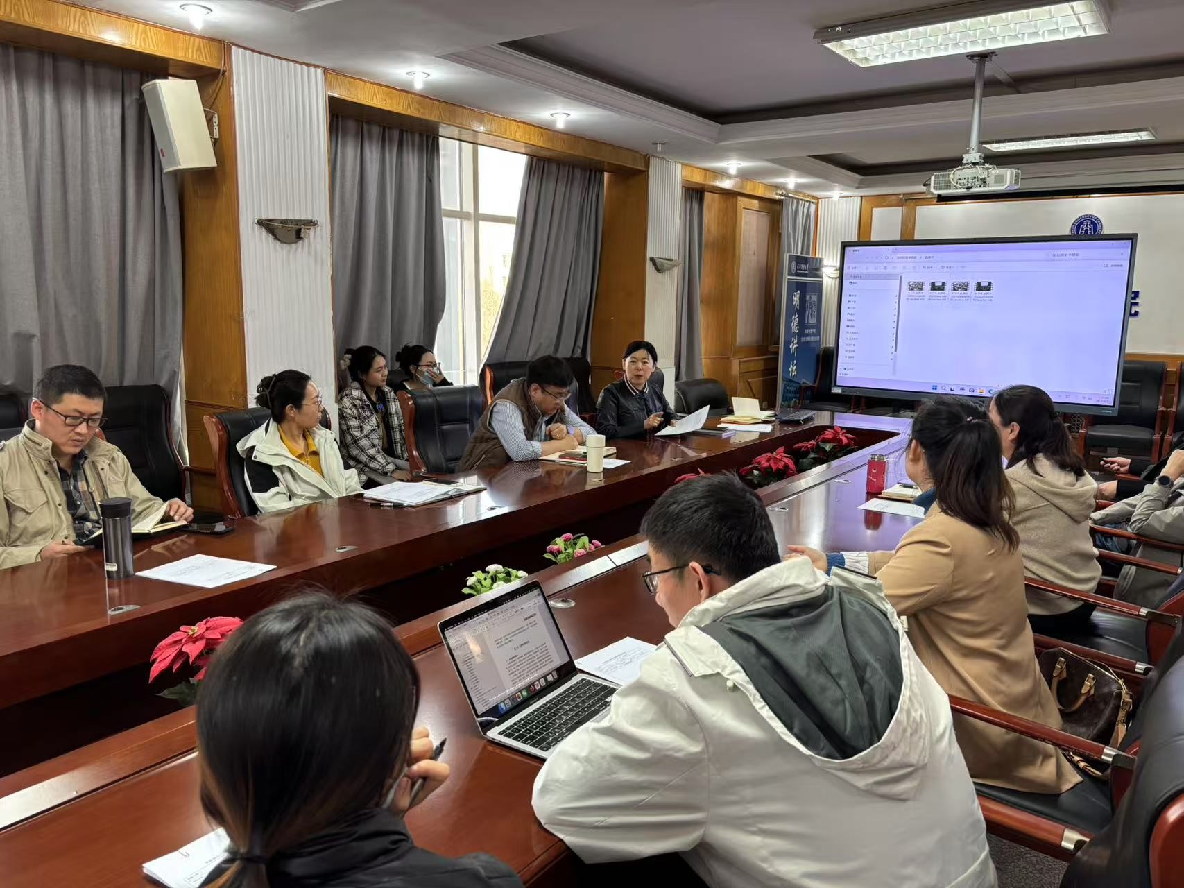 研讨会主要是对四位青年教师的课堂教学开展听课和评课。系室主任和学院领导集中观看了四位教师本学期的课堂教学实录视频,并逐一进行点评。从课程设计、授课技巧、教学组织、课件制作、师生互动、教学平台使用、教态语态、教学材料等多个方面进行了悉心指导,结合自己多年课堂教学经验,为青年教师提出了中肯而又宝贵的意见和建议。