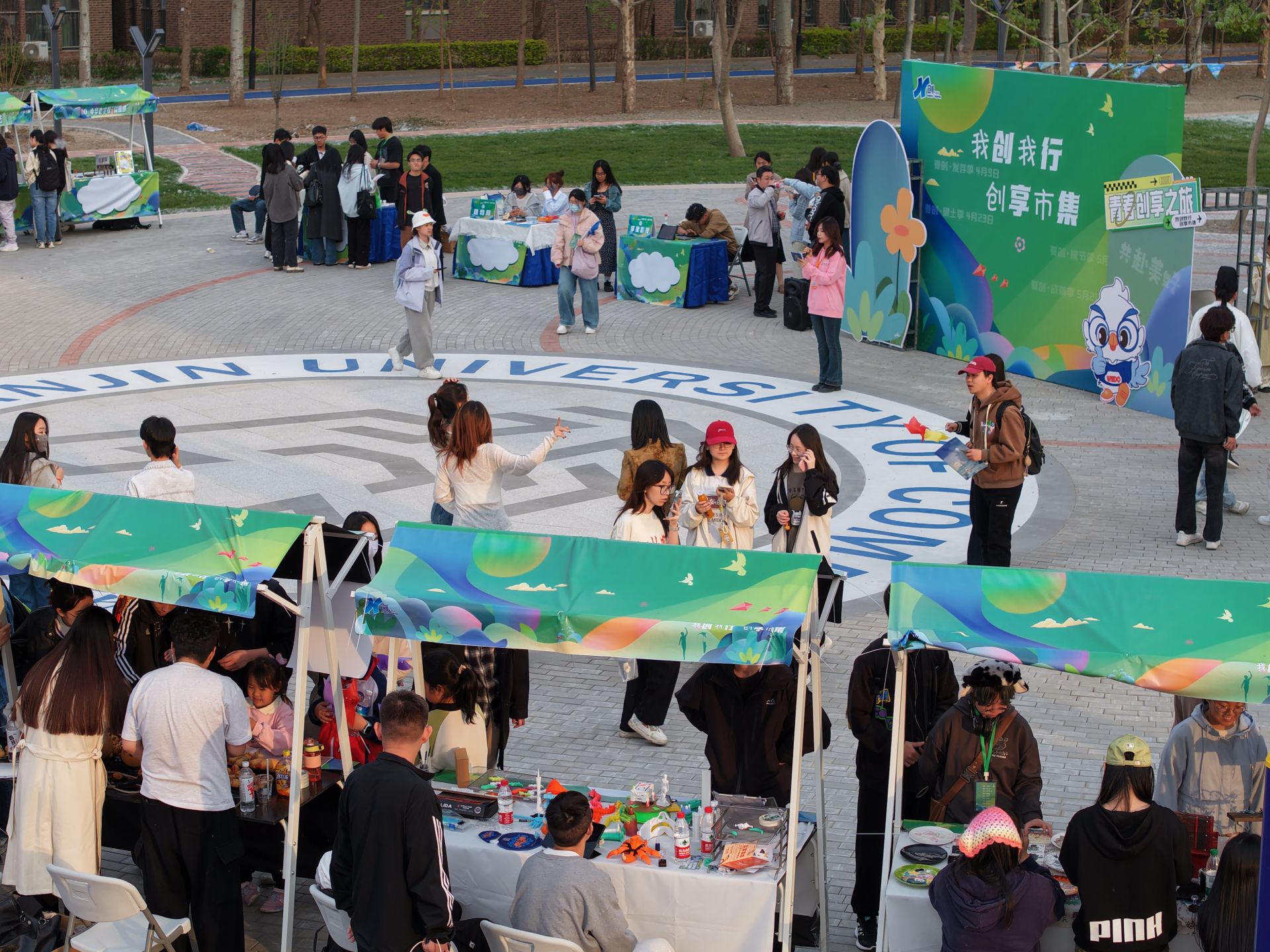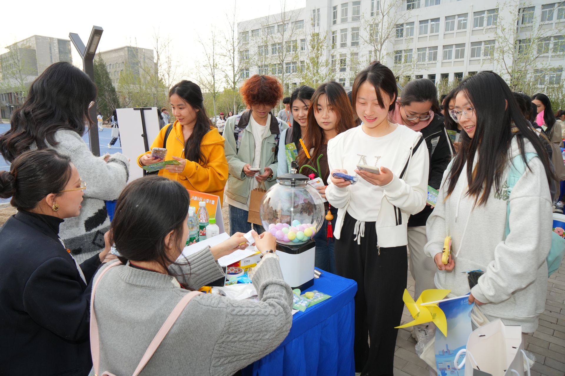 4月9日下午,beat365英国官方网站“我创我行·创享市集”在南区休闲广场开市。本次活动由大学生创业中心主办,校团委及各二级学院协办,微渡创业联盟和弘毅研学社承办,以“实践出真知,市集见真章”为主题,旨在深化产教融合,全力打造“社区育人服务圈”,推动“创意-验证-孵化”全链条培育,助力学生项目落地转化。