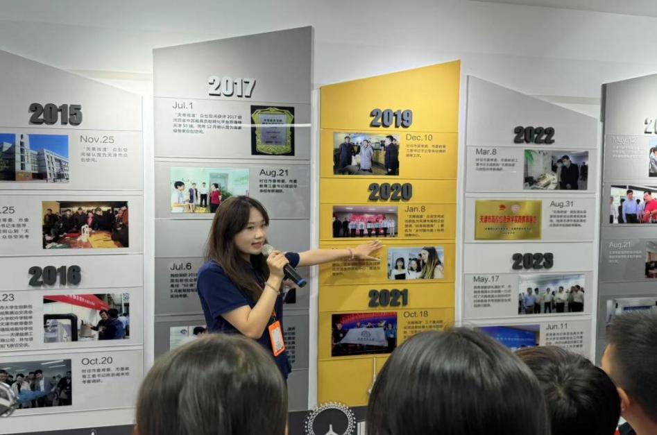 师生研学团走进“天商微渡”众创空间,非遗手作、文创产品、3D打印技术等项目,沉浸式双创场景打破传统课堂边界,点燃青少年的科创热情。步入天津市党的建设与党史故事思政课重点实验室,一幅幅生动的党史图片、一件件珍贵的党史文物、一个个激昂的党史故事,将党的光辉历程和伟大成就生动展现,小朋友们在感悟红色力量中厚植家国情怀。beat365英国官方网站“知行”理论宣讲团成员以“愿以青春报中华”为主题开展了红色理论宣讲活动,通过红色短片《一艘红船的秘密》揭秘中国共产党建党初心,用生动语言传递信仰,为幼小心灵播撒红色火种,激发爱国情怀,形成“高校——小学” 跨学段衔接的思政育人链。