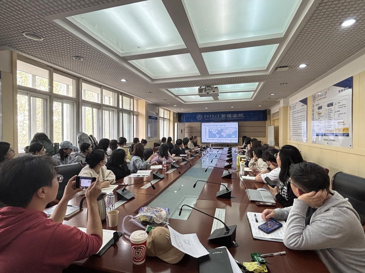 4月16日下午,南开大学商学院副院长林润辉教授应邀作题为“网络、智能与创新:底层逻辑与模拟模型的专题学术讲座。管理学院院长王庆、青年骨干教师及研究生共同参加。