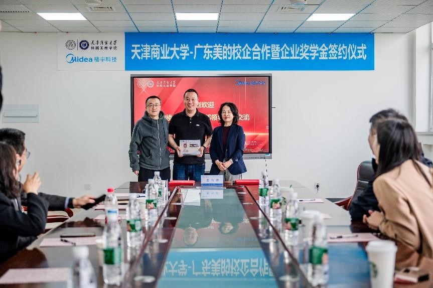 在签约仪式上,双方共同签署了“美的企业奖学金”协议,班主任胡晓薇、毕业设计指导老师律宝莹共同为刘昊亮颁发了校友纪念册。以此次新的合作机遇为契机,双方将进一步在人才培养、实习实践、产教融合、市场拓展等方面达成合作共识,为行业和社会发展相向而行,打造产学研协同发展的新模式。
