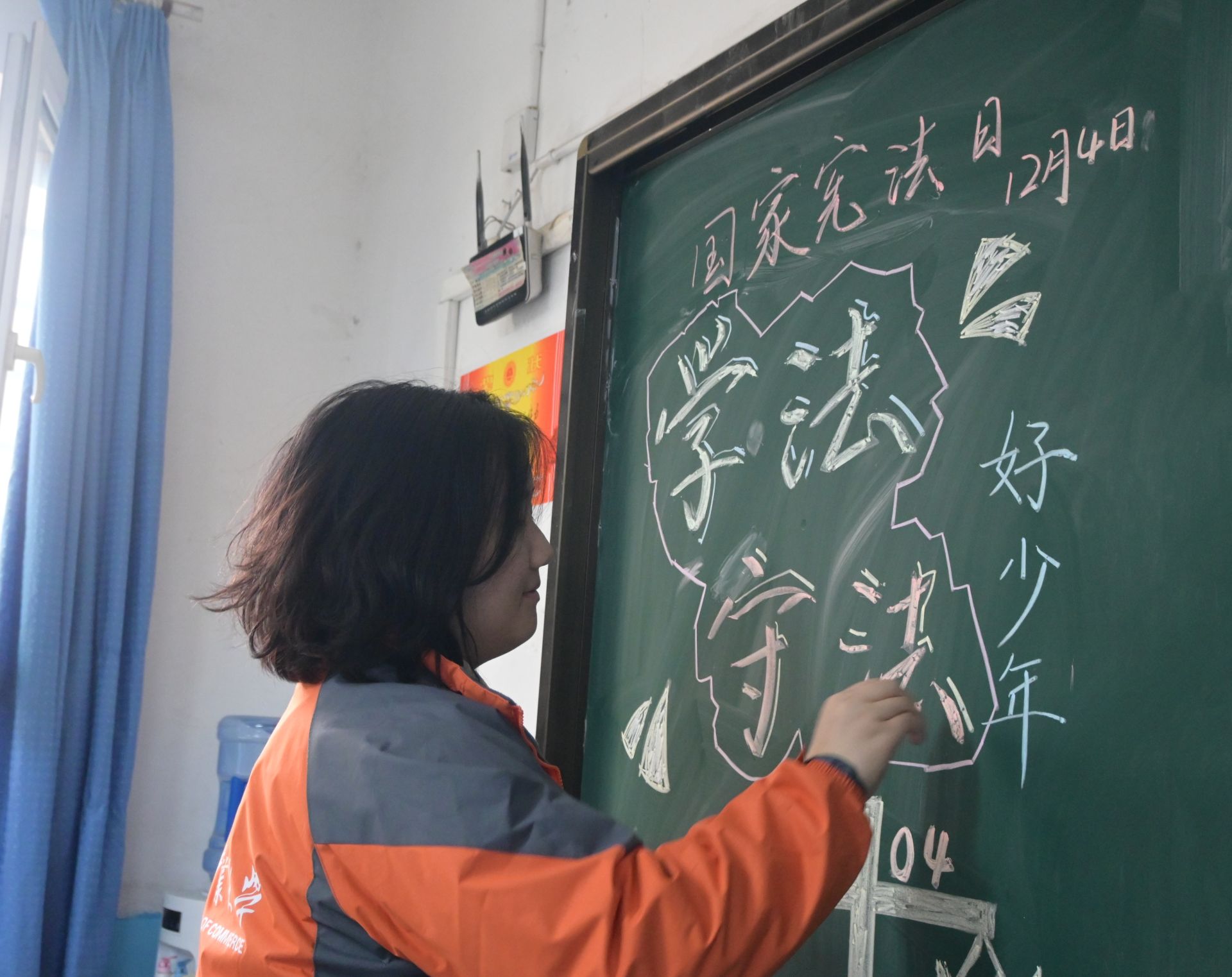 在《道德与法治》课堂上,支教团成员创新教学方法,结合自身法学专业素养,组织了模拟法庭辩论活动。学生们分别扮演法官、检察官、律师和原被告人等角色,围绕模拟案件展开辩论,真切地体会到法律的公正与威严,增强了遵守法律的自觉性。支教团成员还在班级内绘制法治宣传黑板报,将法治观念深植于心,实现了思政教育与法治教育的有机融合。