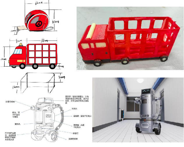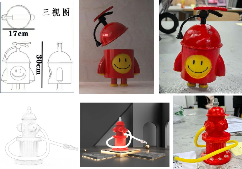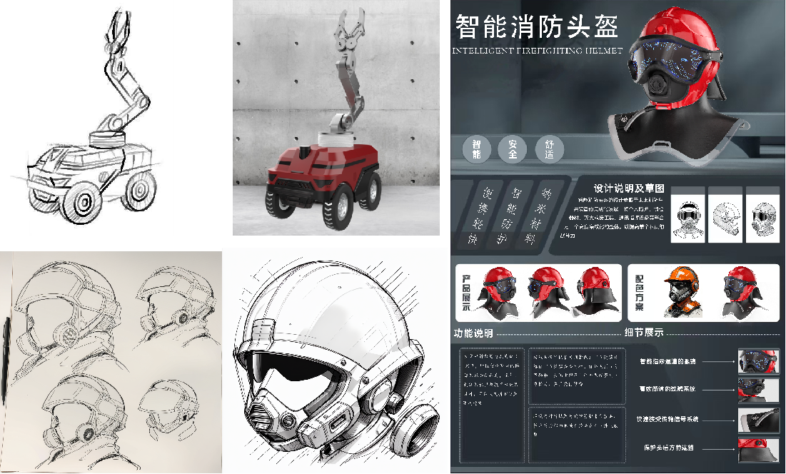 本次课程以“消防安全”为主题开展,根据目前工业设计专业分为产品设计和交互设计两个方向,同学们自由结组,通过前期调研、小组讨论、头脑风暴及任课教师刘恒丽老师的指导,从前期提出想法、绘制草图方案、筛选和确定方案,到运用计算机软件建模和渲染,最终形成了消防文创产品、面向校园和学生宿舍消防安全的智能产品、消防安全教育APP交互设计、宿舍用品爆燃后模型效果等作业成果。在结课式上以小组为单位将成果进行展示和互评,并为获奖小组颁发荣誉证书。