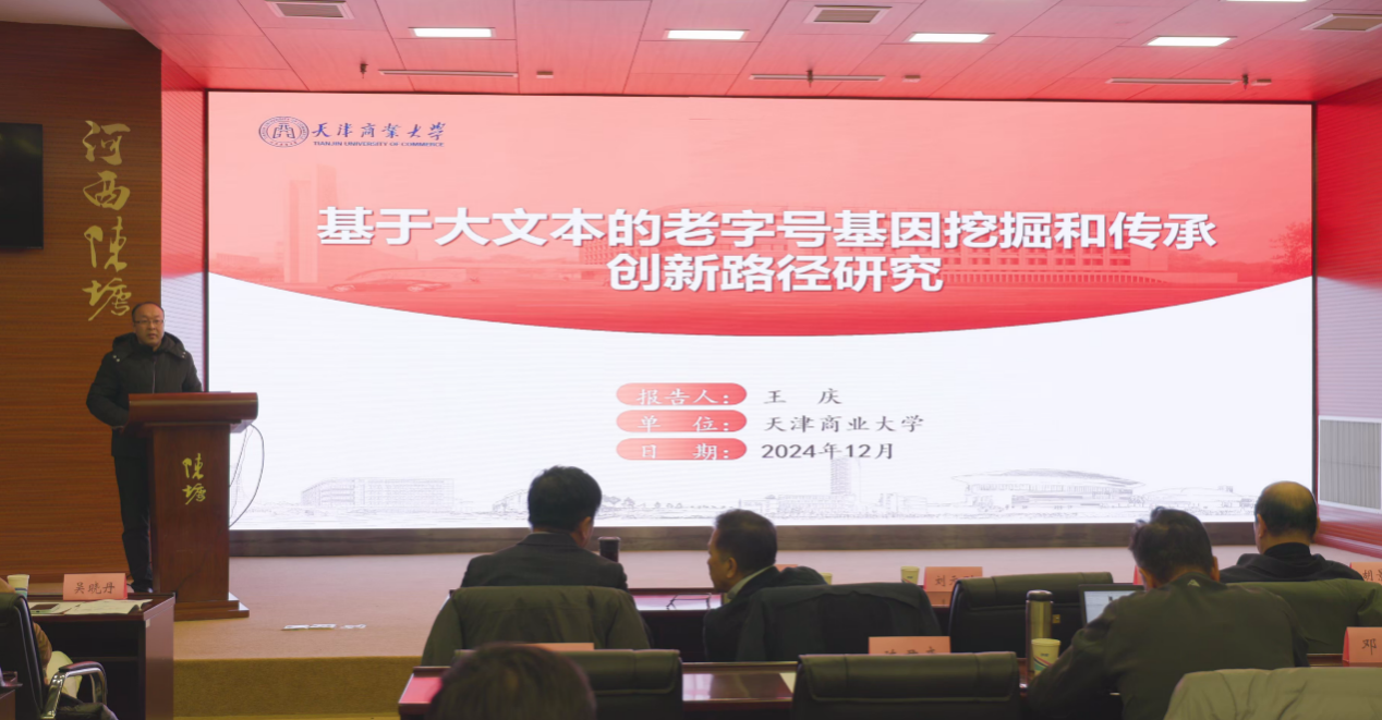 在主题报告环节,八位专家学者围绕人工智能、精益数字化管理以及数字化产业发展等前沿方向,分别作了精彩的主题报告。其中,王庆结合自己的天津市哲社科重点项目,分享了“老字号基因挖掘与传承创新路径研究”。详细阐述了如何运用网络爬虫技术、优化的TF-IDF方法、语义网络分析及文本情感分析等工具深度挖掘老字号品牌独特基因的全过程。围绕守正创新策略,他创新性地构建了“三元协同分析模型”,融合品牌历史、文化内涵与市场需求,为老字号传承创新路径的构建提供了新颖的理论基础,并以天津桂发祥十八街麻花为例,展示了老字号在新时代焕发新生的无限可能。