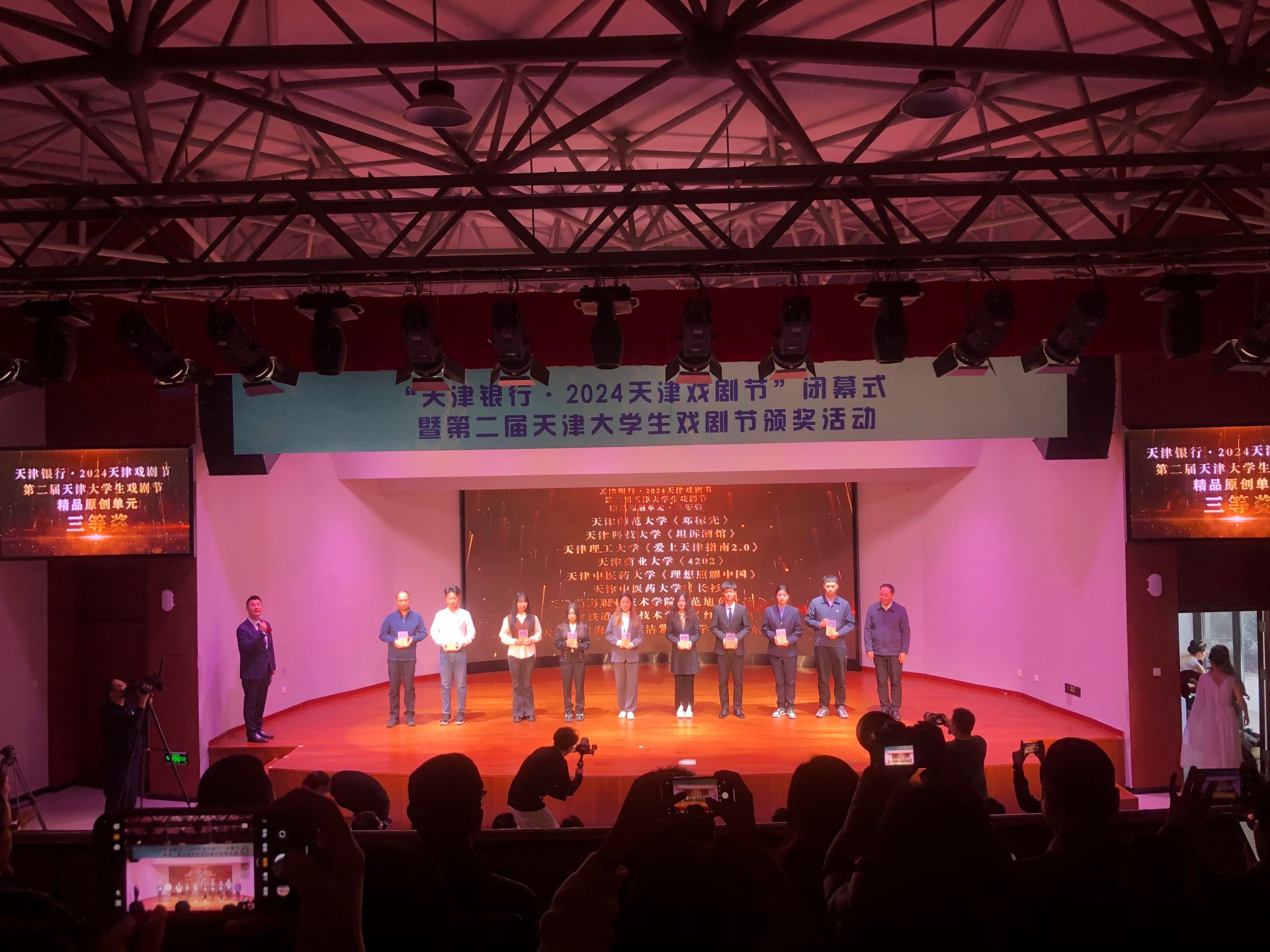 12月27日,由中共天津市委宣传部、共青团天津市委员会、天津市文化和旅游局、天津市教育委员会、天津北方演艺集团主办,天津人民艺术剧院、开心麻花(天津)文化传播有限公司承办“天津银行·2024天津戏剧节”闭幕式暨第二届天津大学生戏剧节颁奖典礼在天津大学卫津路校区举行,beat365官网星海艺术团话剧分团原创话剧《4202》在本次戏剧节中获得精品原创单元三等奖。