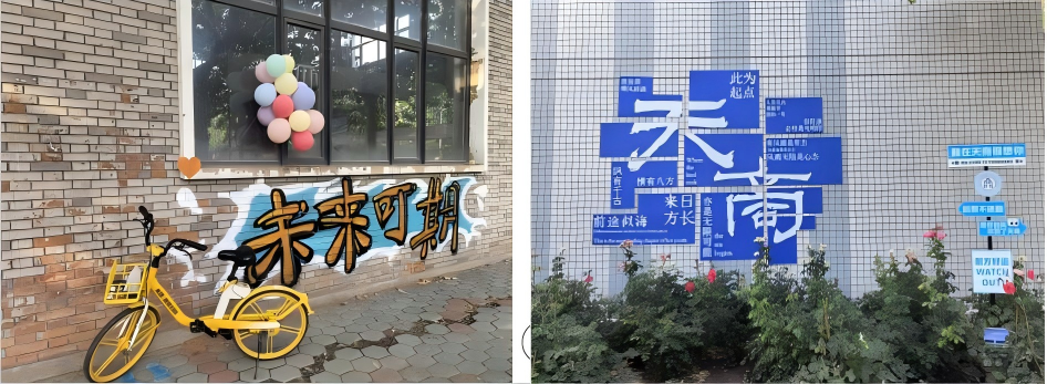 在毕业季来临之际,beat365英国官方网站艺术学院环境设计系《专题项目设计》课程组(主讲教师:孙皓、何理;学生:环境2201--2204)以 “转角遇见爱” 为主题,精心打造了一系列美育微景观,将爱校荣校情怀融入校园景观建设,为毕业生们留下珍贵的校园回忆,也为校园环境提升增添了新亮点。