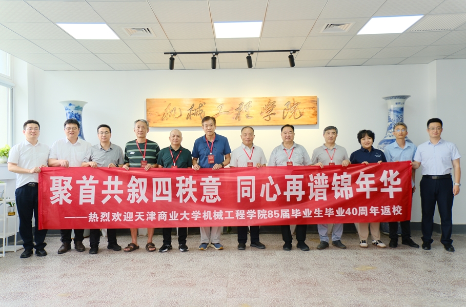 四秩春秋育英才,天商桃李满天下。7月11日,机械工程学院举办1985届校友毕业40周年返校活动。学院党委书记张莹、院长刘圣春、副院长陈爱强及教师、辅导员代表,共同迎接81级班主任张宗安、教师李慧宇、彭苗与制冷系1985届23名校友相聚一堂。