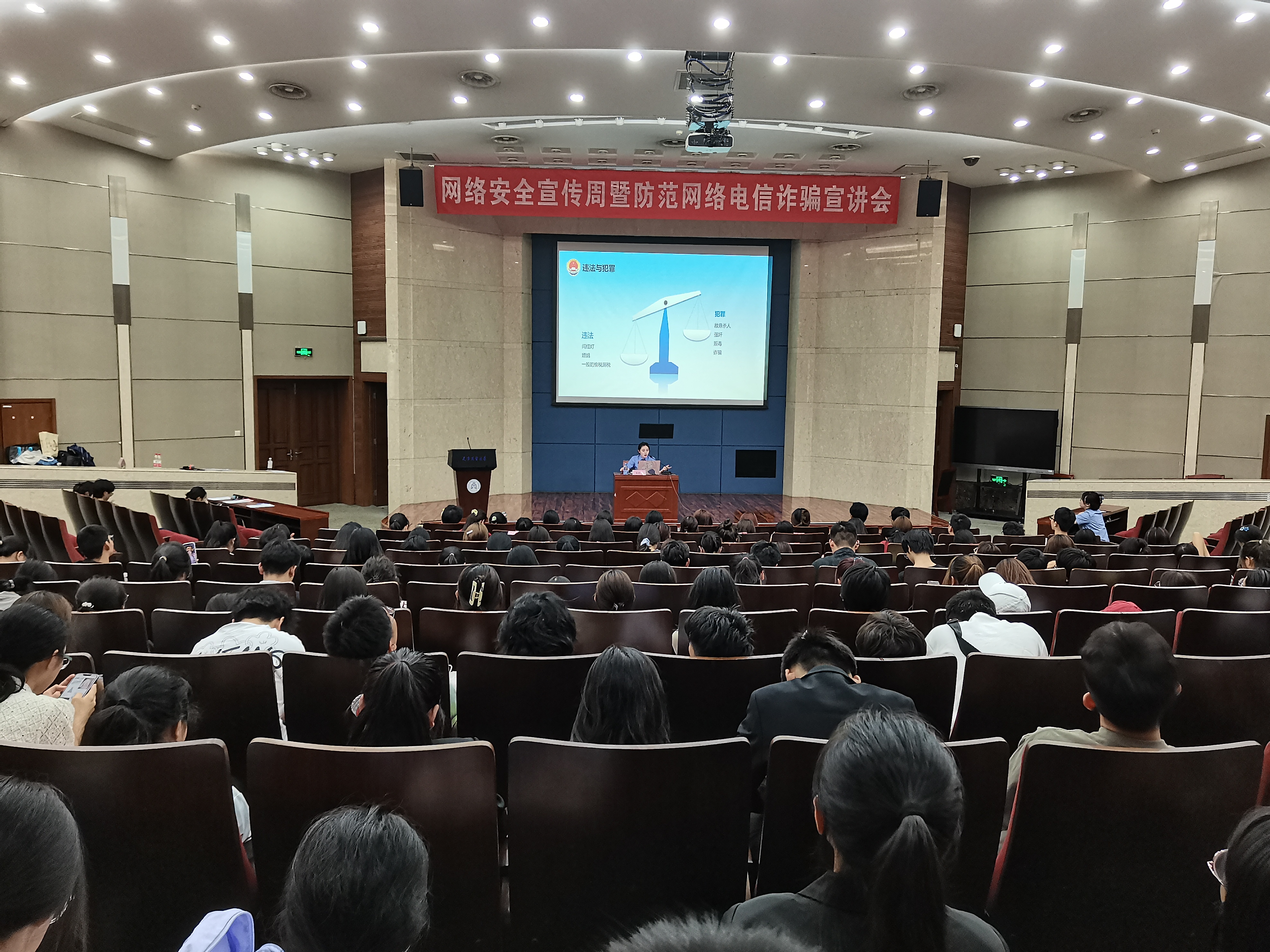 举办专题讲座,筑牢网络安全防线。邀请北辰区检察院张力元以“预防网络犯罪 规划精彩人生”为主题,为200余名新生开展防范网络电信诈骗宣讲。张力元从近期热门电影《孤注一掷》切入,结合学生因售卖游戏账号、购买二手物品、网上刷单被诈骗等身边案例,重点讲解培训陷阱、中介陷阱、贷款陷阱、刷单等大学生被骗新套路,并告诫同学们切记贪婪、恐惧和轻信。