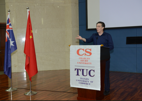 澳大利亚查理斯特大学的商业、法律和行为科学学院院长Lewis Bizo教授发来祝贺视频,他在视频中欢迎2023级新生成为合作办学项目的一员,希望同学们能够提升全球视野,努力探索科学前沿、激活思想,促进两校的文化交流。