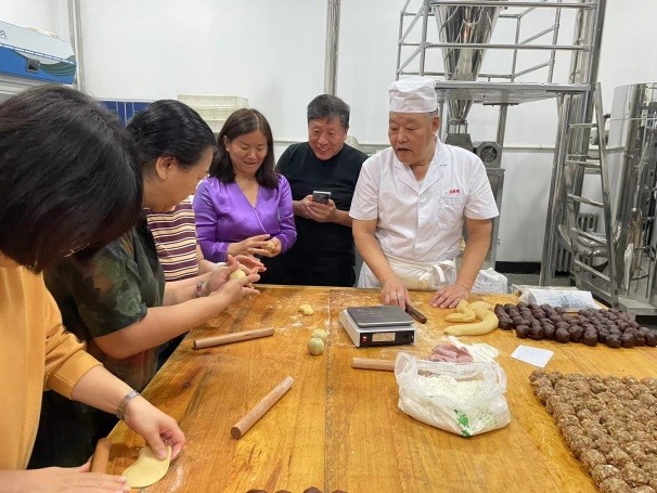 在之后的活动中,学院邀请来的桂顺斋师傅带领老师们在食品专业实验室开展了中秋月饼的现场制作。在老师傅的指导下,老师们擀面皮,包馅料,压模型,感受着传统手工月饼的技艺魅力。同时,在学院会议室也穿插了灯谜互动、投壶等多项游戏活动,现场欢声笑语,喜气洋洋。老师们的参与热情极高,获得了游戏小奖品,品尝到了自己亲手烤制的月饼。