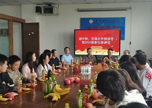 金秋九月,丹桂飘香。为使2023级新生感受到学院的温暖与关怀,度过一个温馨幸福的节日,9月27日中午,外国语学院开展“迎中秋、庆国庆”2023级新生座谈会。学院全体领导、22名新生代表、部分新生班主任和辅导员参加座谈会。