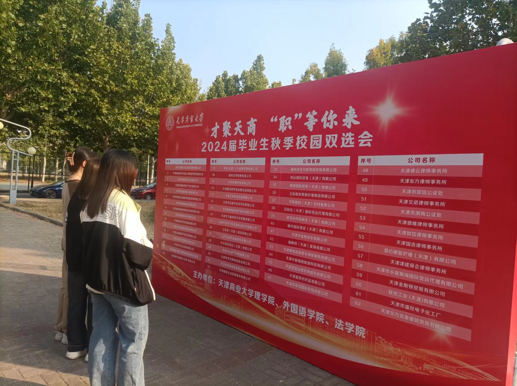 10月11日下午,理学院与外国语学院、法学院在图书馆后广场联合举办“才聚天商·‘职’等你来”2024届毕业生秋季校园双选会。