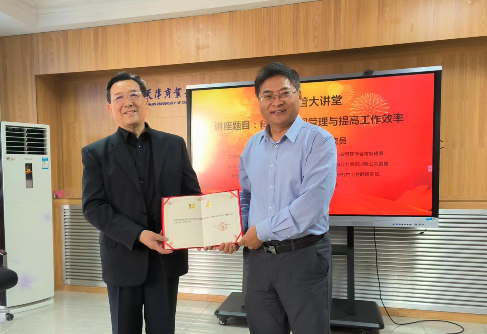 讲座开始前,公共管理学院院长李增田教授为张霁星研究员颁发公共管理专业硕士(MPA)校外导师聘书。