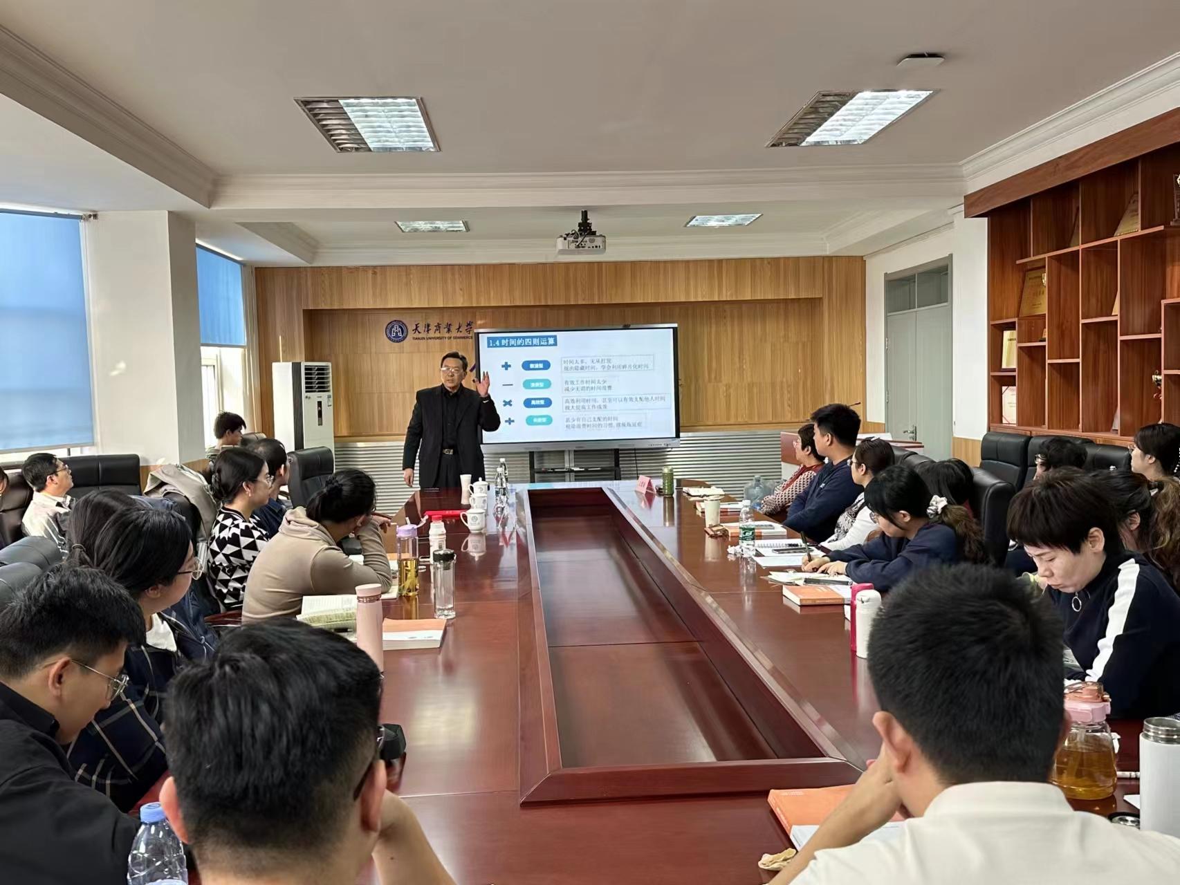 为了进一步增强学院MPA学员的时间管理意识,充分提高MPA学员的工作和学习效率,10月22日下午,公共管理学院特邀天津市行政管理学会常务副会长兼秘书长、原天津市公务员能力建设中心主任张霁星研究员做客“天商公管大讲堂”,为学院师生作题为《科学的时间管理与提高工作效率》的专题讲座。公共管理学院院长李增田教授、部分教师和MPA学员代表40余人参加讲座。讲座由副院长王雪丽教授主持。
