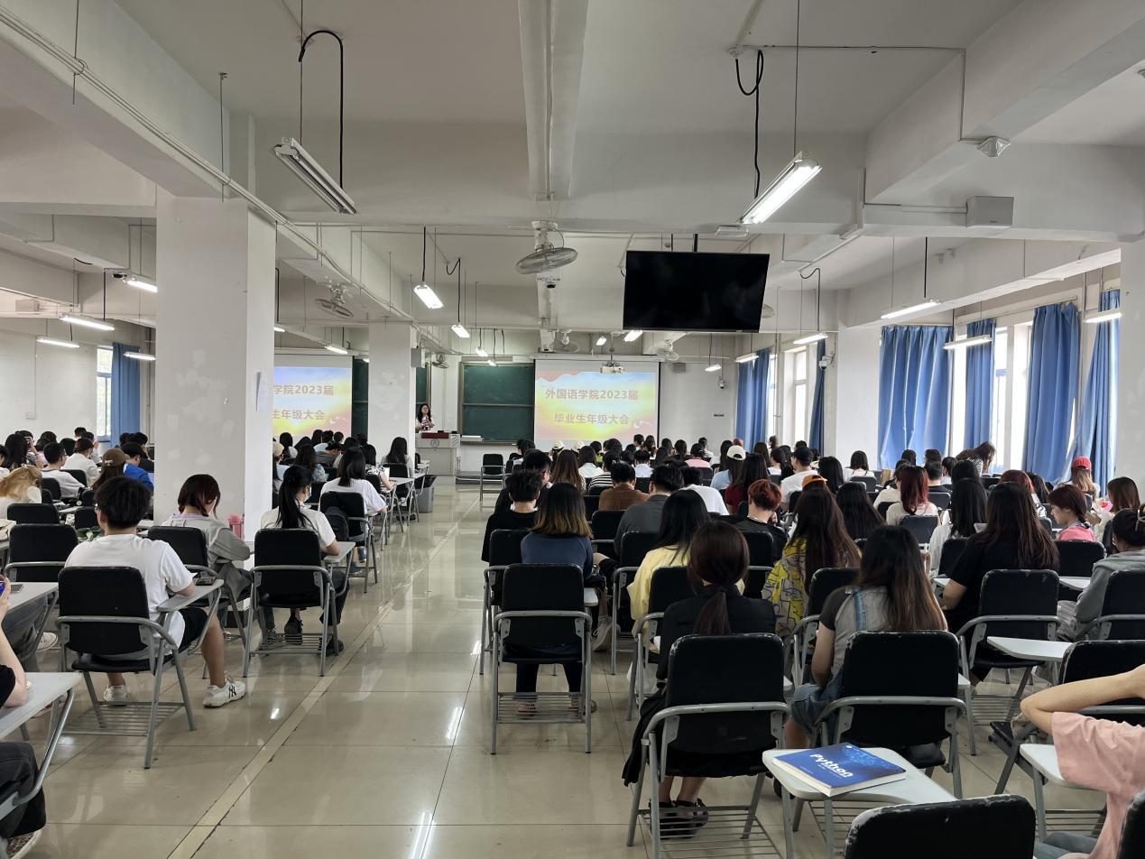 6月1日下午,外国语学院在7号教学楼401教室举行2023届毕业生年级大会。外国语学院党委副书记孟凡荣、辅导员黄潇梦、凯丽贝努尔·吐尔逊、杨佳明以及全体2023届毕业生参加此次大会。