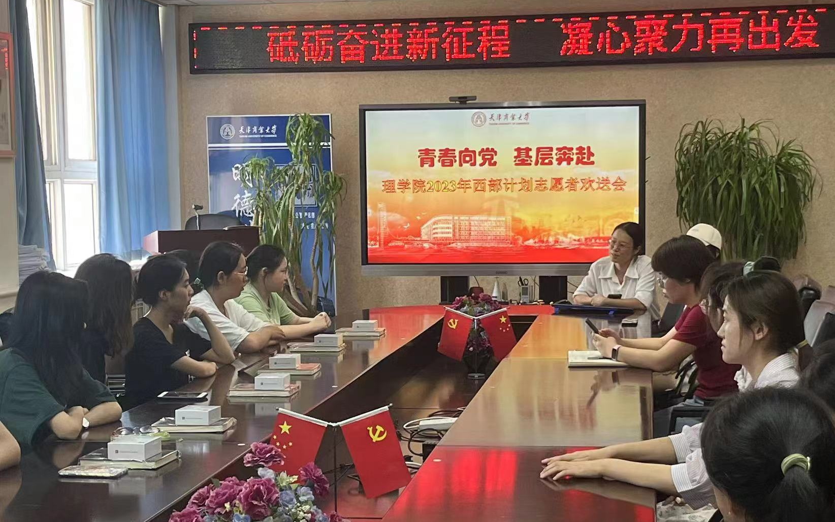 6月20日下午,理学院在一教806会议室举办“青春向党 基层奔赴”西部计划志愿者欢送会,学院党委副书记王素芳、毕业年级辅导员狄佩佩、6名西部计划志愿者以及院团委学生干部、各年级有意向参加西部计划学生30余人参加。