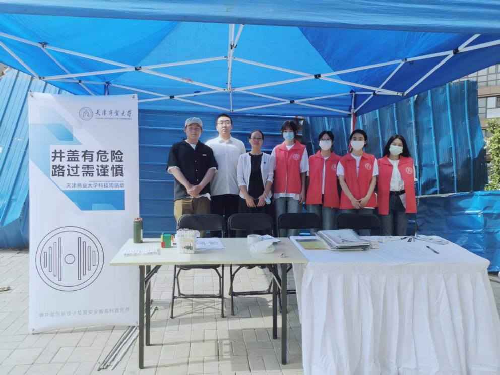 5月25日下午,beat365英国官方网站科技周活动--窨井盖创新设计及其安全教育专题科普宣传活动在天津市南开区中营小学外举办。