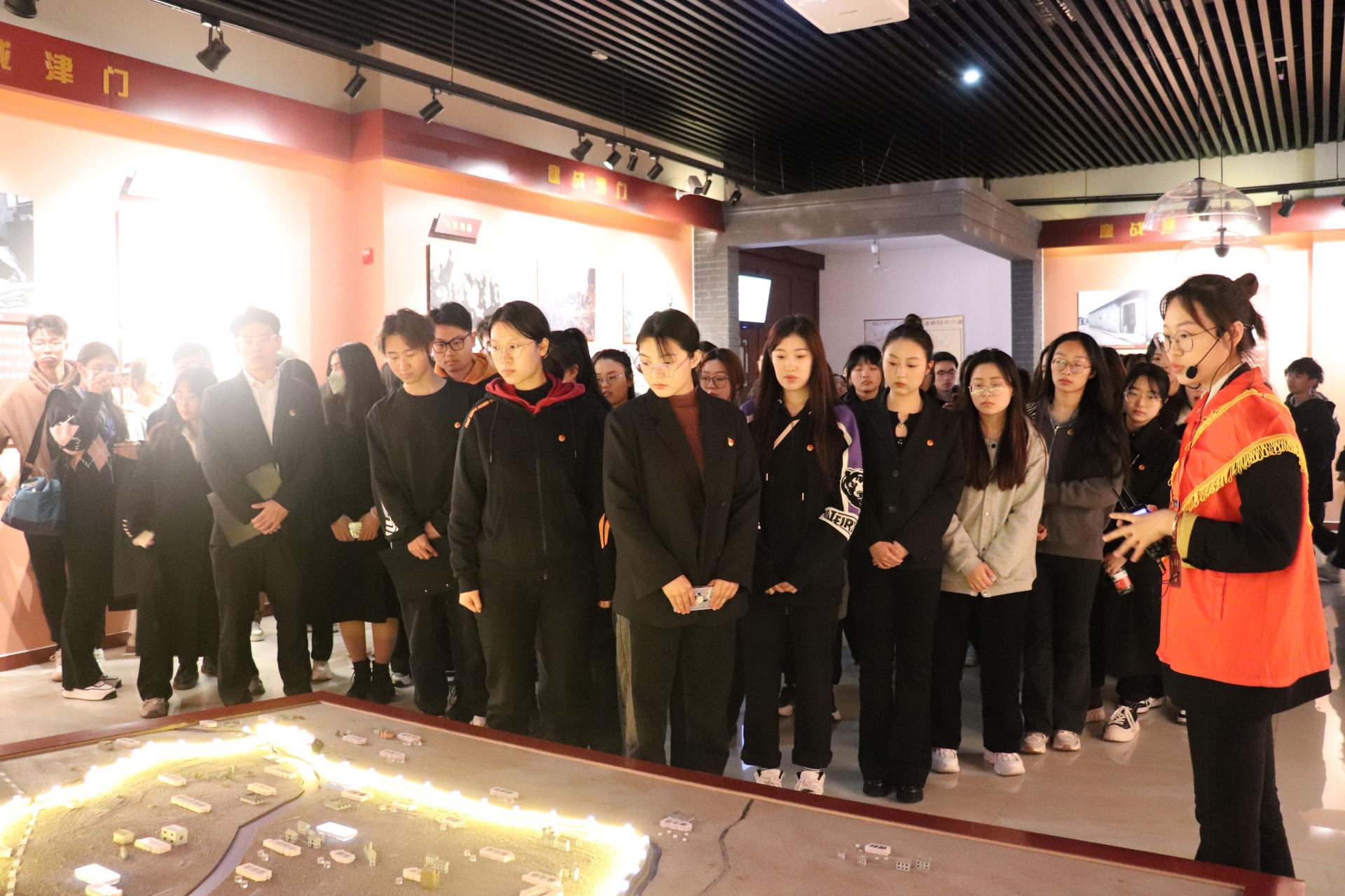 全体人员着装严整,神情肃穆,怀着对革命先烈的崇高敬意来到纪念碑前整齐列队,学生代表向近代以来为了民族独立和人民解放、实现国家富强和人民幸福的革命英烈敬献花篮。全体人员在纪念碑前肃立默哀。天津市第六期青马工程培训班学员李一鸣发言,表达对革命先烈们的哀悼与敬仰以及作为新时代新青年的使命担当。会计学院学生会执行主席马晗琦发出倡议,号召全体团员青年继承先烈遗志,让红色基因、革命薪火代代相传。校学生会执行主席刘锦芸带领全体团员青年重温《入团誓词》,在嘹亮而有力的誓词中进一步坚定了担当时代重任、践行历史使命的决心。宣誓完成后,全体人员敬献鲜花,环绕人民英雄永垂不朽纪念碑一周并瞻仰烈士生平事迹,寄托无限哀思。在参观革命烈士纪念馆的过程中,师生们近距离地感受革命先烈的英雄事迹,深刻认识到今天幸福生活的来之不易,进一步激发了勤奋学习、报效祖国的热情,增强了历史责任感和民族使命感。