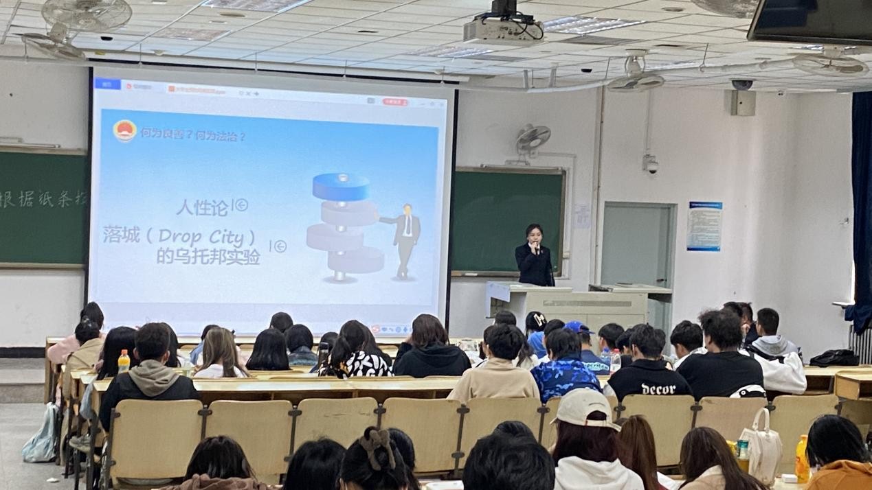为深入学习贯彻习近平总书记关于加强国家安全教育的重要指示精神,引导学院学生牢固树立总体国家安全观,切实提高学生的国家安全意识,增强自我防范能力,远离网络电信诈骗,4月12日下午,法学院在4号教学楼102教室开展“预防网络犯罪,规划精彩人生”专题讲座,主讲人为天津市北辰区检察院检察官张力元,学院22级全体法学专业学生和部分19级毕业生参加讲座。
