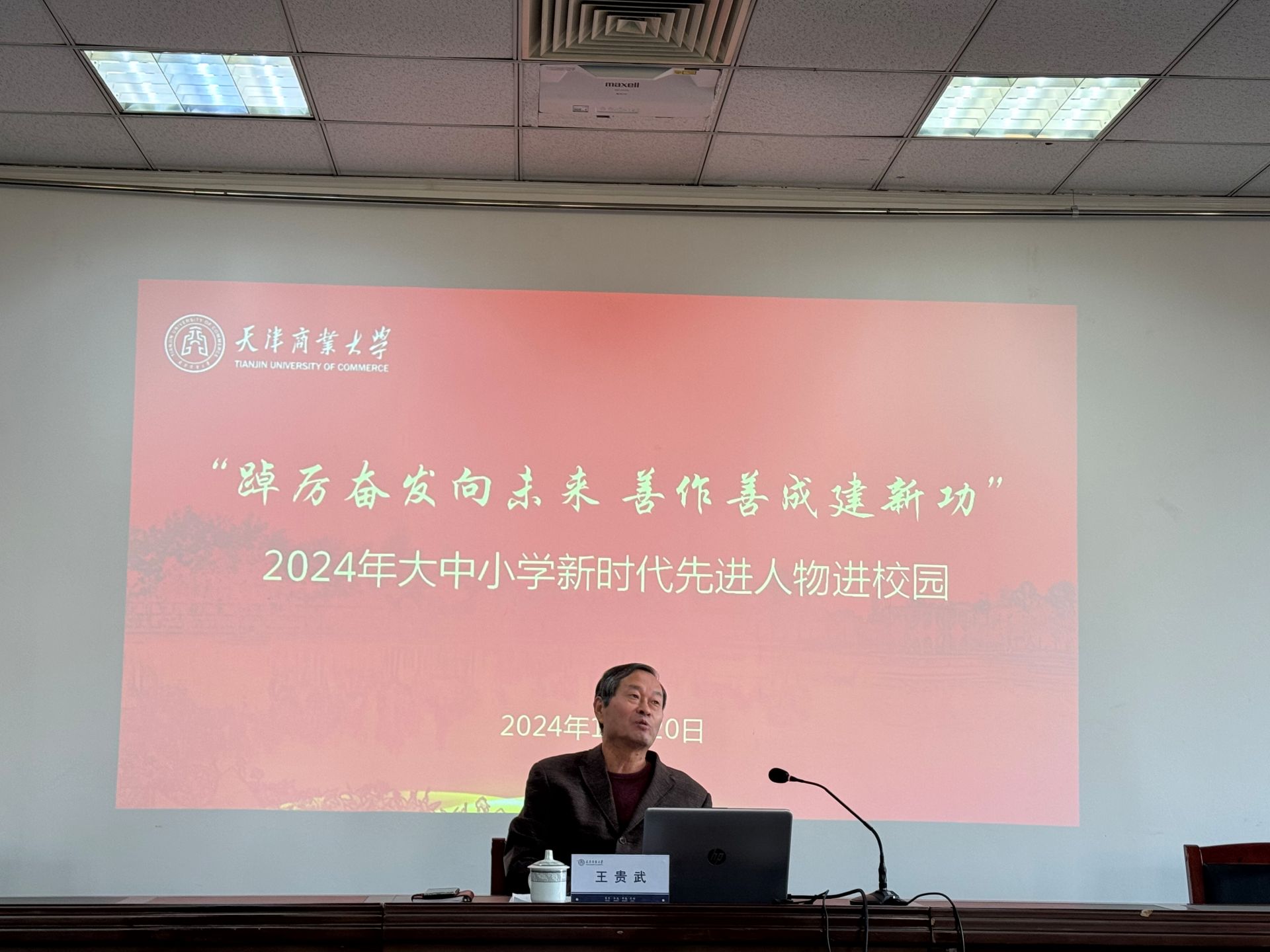 11月20日下午,党委学工部举办2024年“踔厉奋发向未来 善作善成建新功”新时代先进人物进校园主题宣讲活动,邀请全国最美退役军人、天津银座集团有限公司董事长王贵武主讲,党委学工部副部长冯延超主持会议,各学院师生代表百余人聆听讲座。