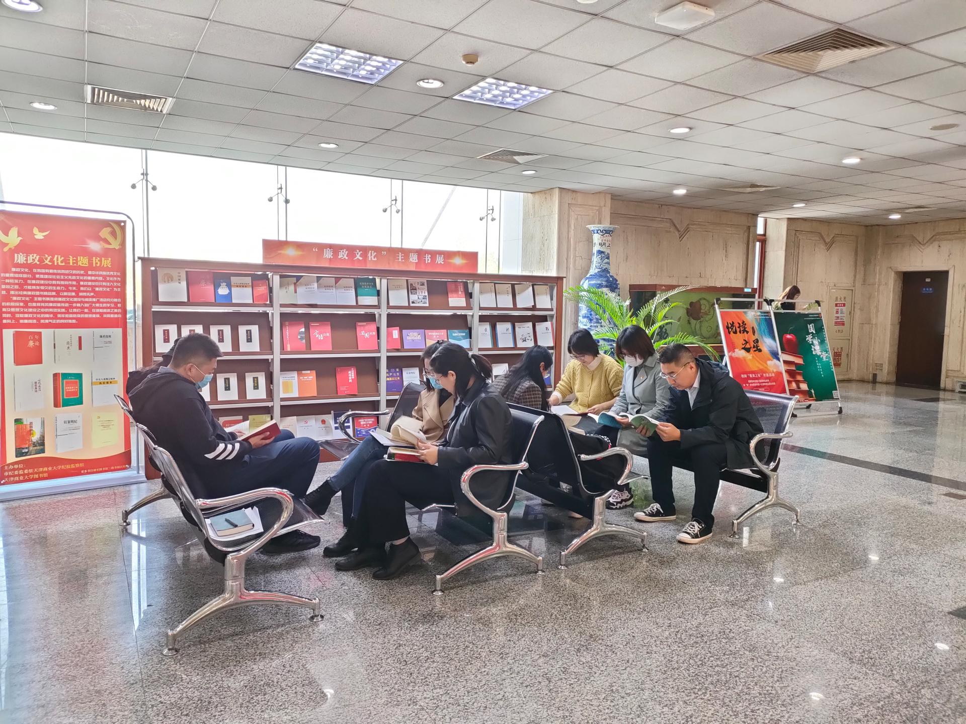 10月26日上午,经济学院组织二级纪委第三协作组全体成员在图书馆二楼大厅“廉政文化”主题书展开展专题读书活动。驻校纪检监察组联络员穆飒莎老师列席。