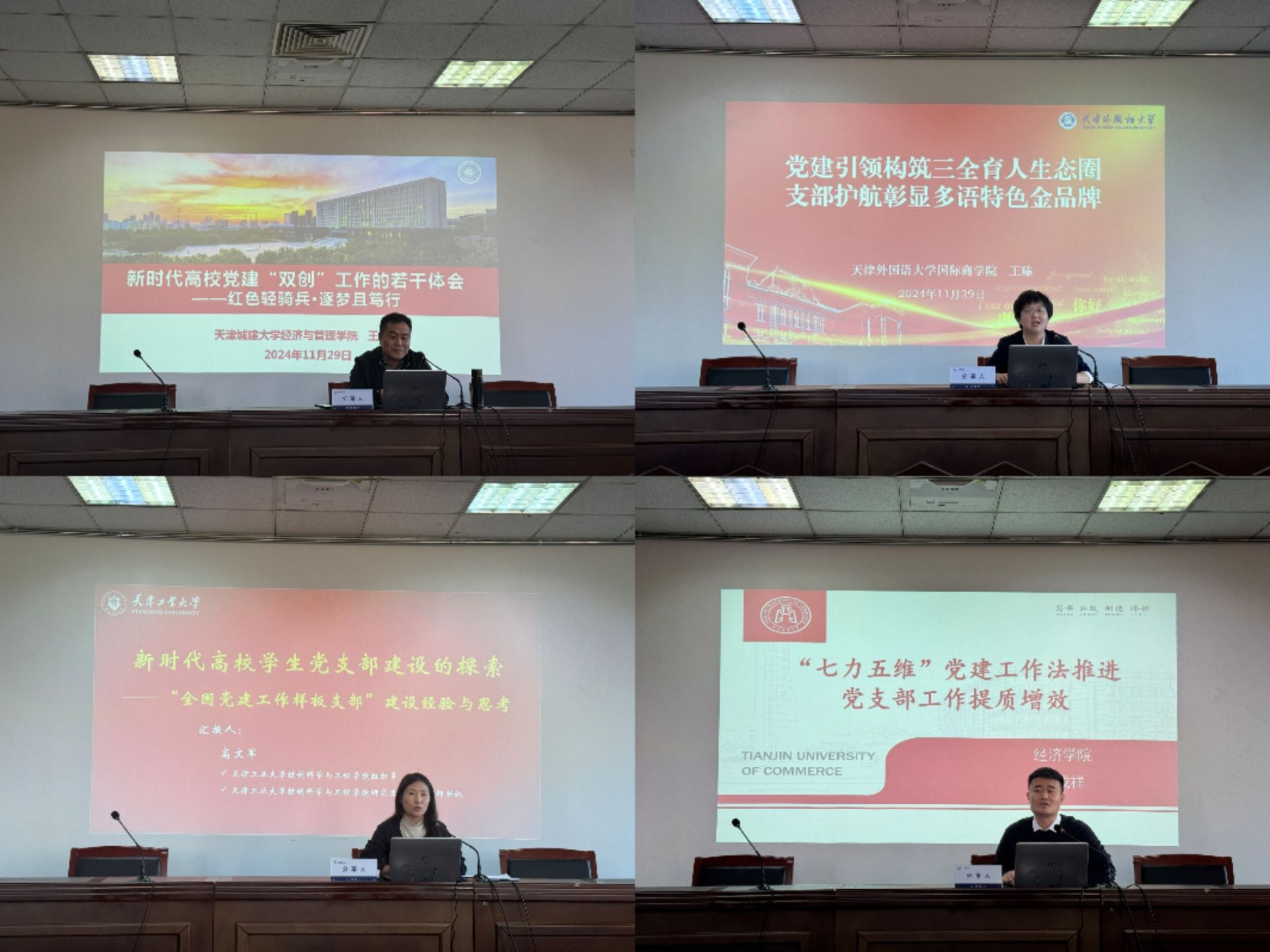 11月29日下午,党委学工部举办2024年“全国党建工作样板支部”创建经验交流会,邀请天津城建大学、天津外国语大学、天津工业大学及beat365官网四名获批第三批、第四批全国党建工作样板支部的学生党支部书记担任分享嘉宾,介绍国家级样板支部申报和创建经验。党委组织部、党委学工部相关负责同志,各学院副书记、组织员以及学生党支部书记代表60余人参加交流会。