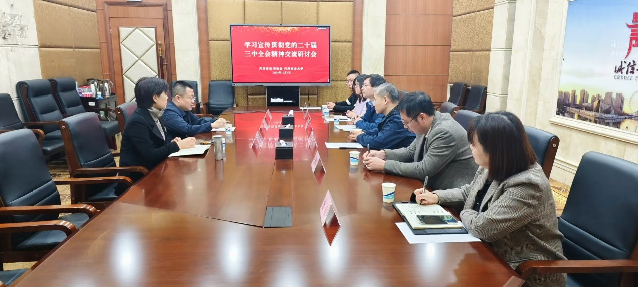 经济学院党支部和天津市信用协会党支部以“学习贯彻党的二十届三中全会精神”为主题,开展了学习交流活动。旨在深入领会党的最新政策精神,促进理论与实践的深度融合,提升党员干部的思想觉悟和业务能力,为推动经济学院和信用协会的高质量发展注入新的动力。