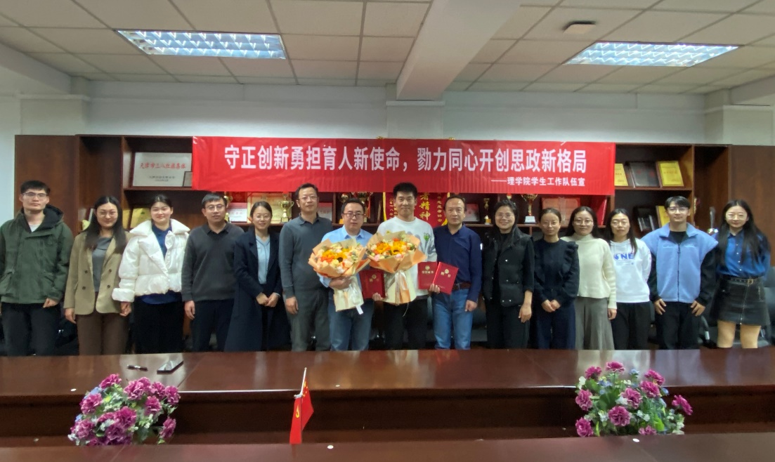 垢宝印为聂永胜、陈飞超、朱玉颁发了理学院“优秀辅导员”荣誉证书。他对三位老师在辅导员岗位工作期间付出的辛勤工作表示感谢,对他们敢于担当的敬业精神表示赞赏。勉励学工队伍要进一步发扬良好传统,不断锐意进取,在学生成长的道路上给予他们更多的引导与支持。