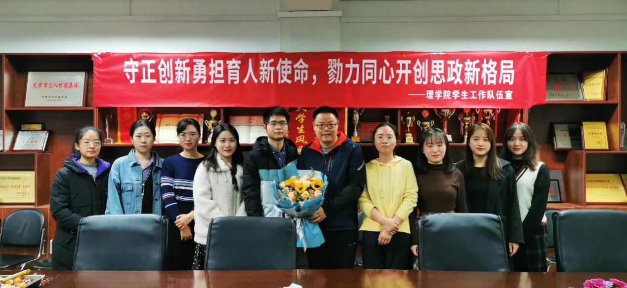12月8日下午,理学院在一教806会议室举行博士辅导员刘高生期满工作总结会暨学业导师聘任仪式。院党委书记梁强、院长安建业、全体辅导员以及2019级研究生参加。会议由党委副书记王素芳主持。