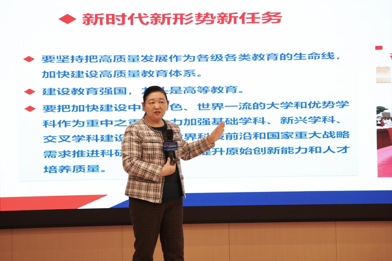 杨芳进行“深化改革,提升拔尖创新人才自主培养行动自觉”分享,从剖析当下拔尖创新人才自主培养面临的挑战,到提出切实可行的改革举措与行动策略,深度聚焦“新工科、新医科、新农科、新文科”协同推进的宏观背景,引导老师们进行培养模式创新、关注重点支持领域。陈立斌进行“新质生产力要求下创新教育人才培养体系的构建与探索”分享,为构建多元融合、协同创新的人才培养体系指明了方向与路径,尤其在课程体系重塑、教学方法革新以及实践平台搭建等方面所提出的独到见解,为老师们提供了实践范例与指导方案。