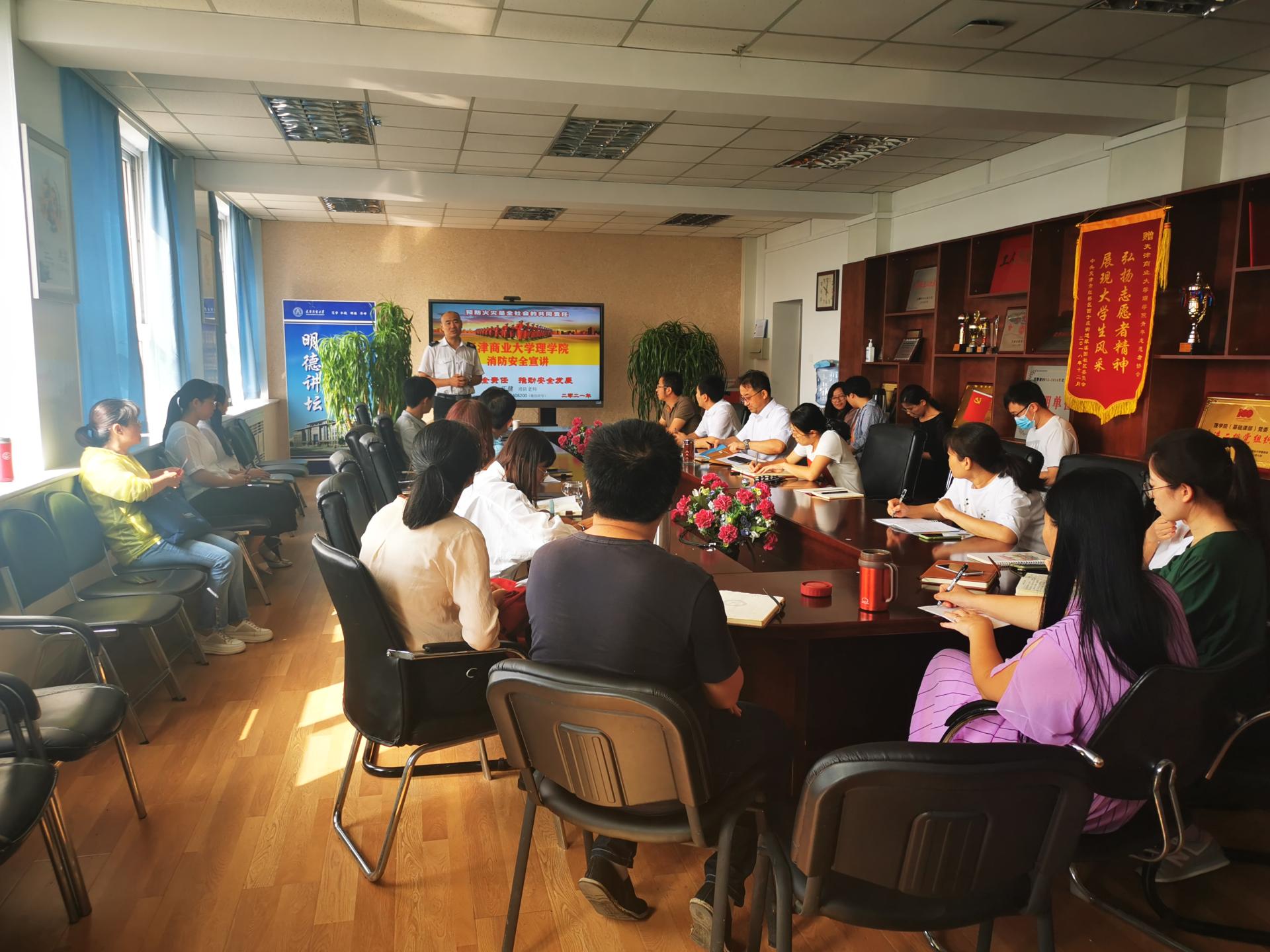 院长安建业传达了近期国家、天津市及学校安全工作精神,同时介绍了学院每年以消防演习、新生安全教育、定期检查等形式开展的各种宣传工作,希望老师们提高防微杜渐的意识和自救的能力。