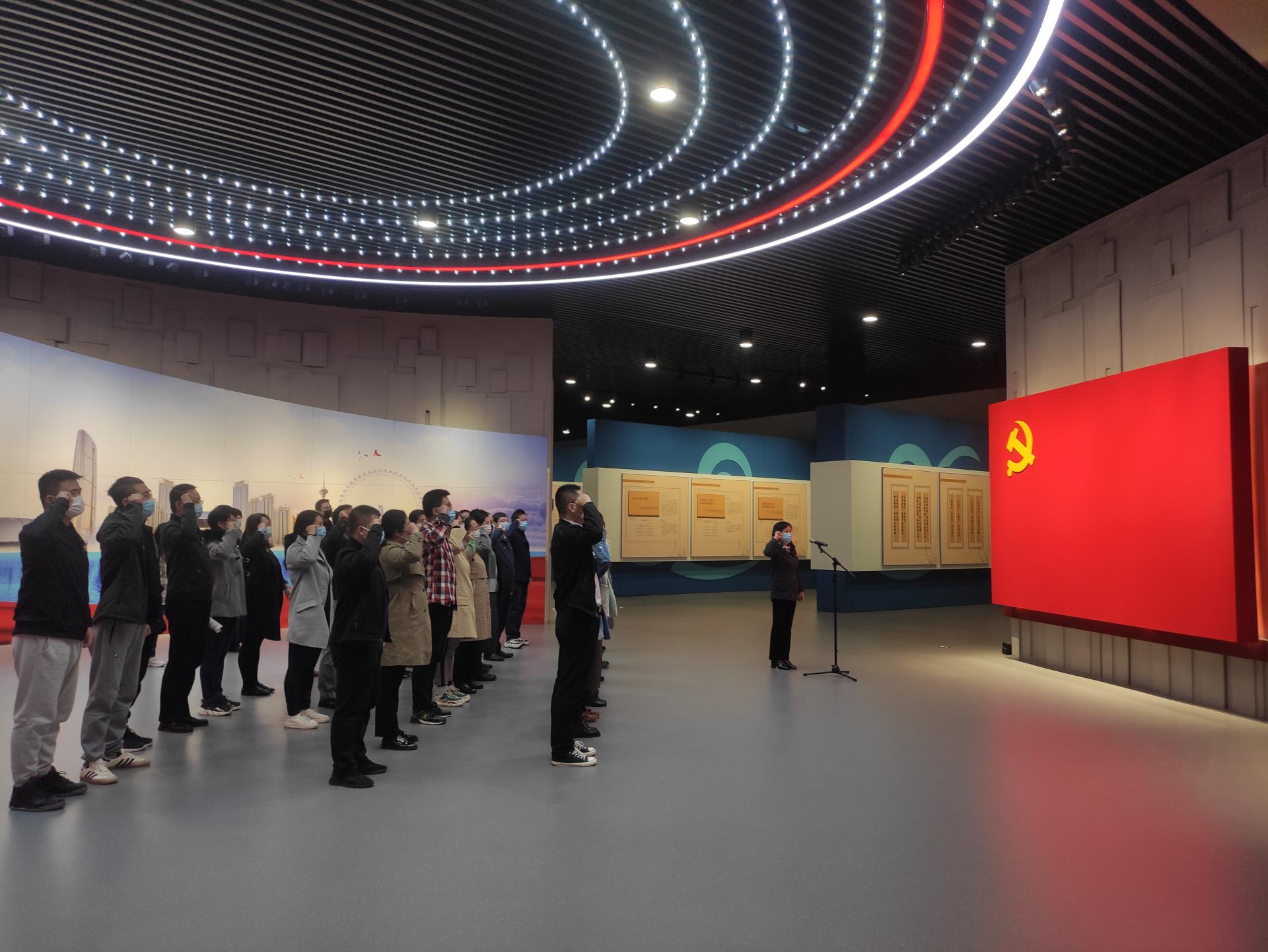 全面从严治党主题教育展以习近平新时代中国特色社会主义思想为指导,以党的政治建设为统领,以全面从严治党为主题,集中展示党的十八大以来,以习近平同志为核心的党中央以永远在路上的坚韧和执着推进全面从严治党取得的历史性成就。展馆以序厅、政治立魂篇、严管立威篇、纪法立行篇、警示立戒篇、党性立心篇、文化立信篇、互动区、放映厅和尾厅等10个部分构成。在讲解员带领下,大家在序厅集中观看纪录片《赶考》,参观了各个展厅并集中收看高校系统处级干部违法违纪警示教育纪录片,最后在院党委书记吕成捷的领誓下重温了入党誓词。