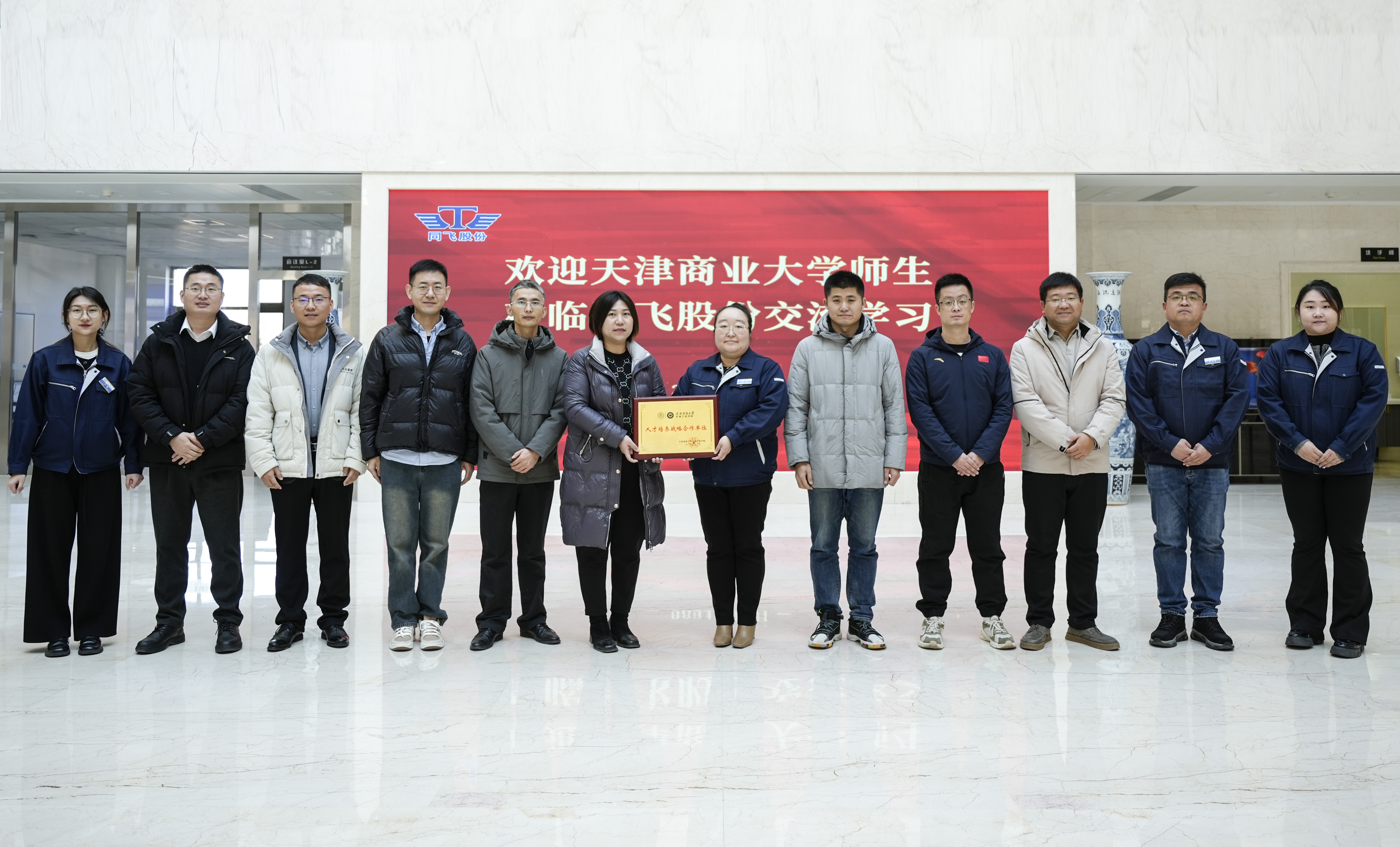 在三河同飞制冷股份有限公司,公司人力资源总监徐征带领机械工程学院一行参观了公司展厅、新落成投入使用的三期车间及生活运动配套场地等。徐征系统介绍了公司产品的行业应用、研发实力、全球战略、人才培养、企业文化等。王珊代表学院为企业赠送了“人才培养战略合作单位”的牌匾,双方从校企科研合作、学科产教融合、学生实习就业等多方面深入开展交流。今年就职于三河同飞的10余名2024届毕业生为来访的学弟学妹们及母校老师们进行了公司产品介绍及个人成长心得分享,表示将传承天商机械学子的优良品质,不辜负母校老师的深厚教诲,认真工作努力学习,为企业发展贡献力量。