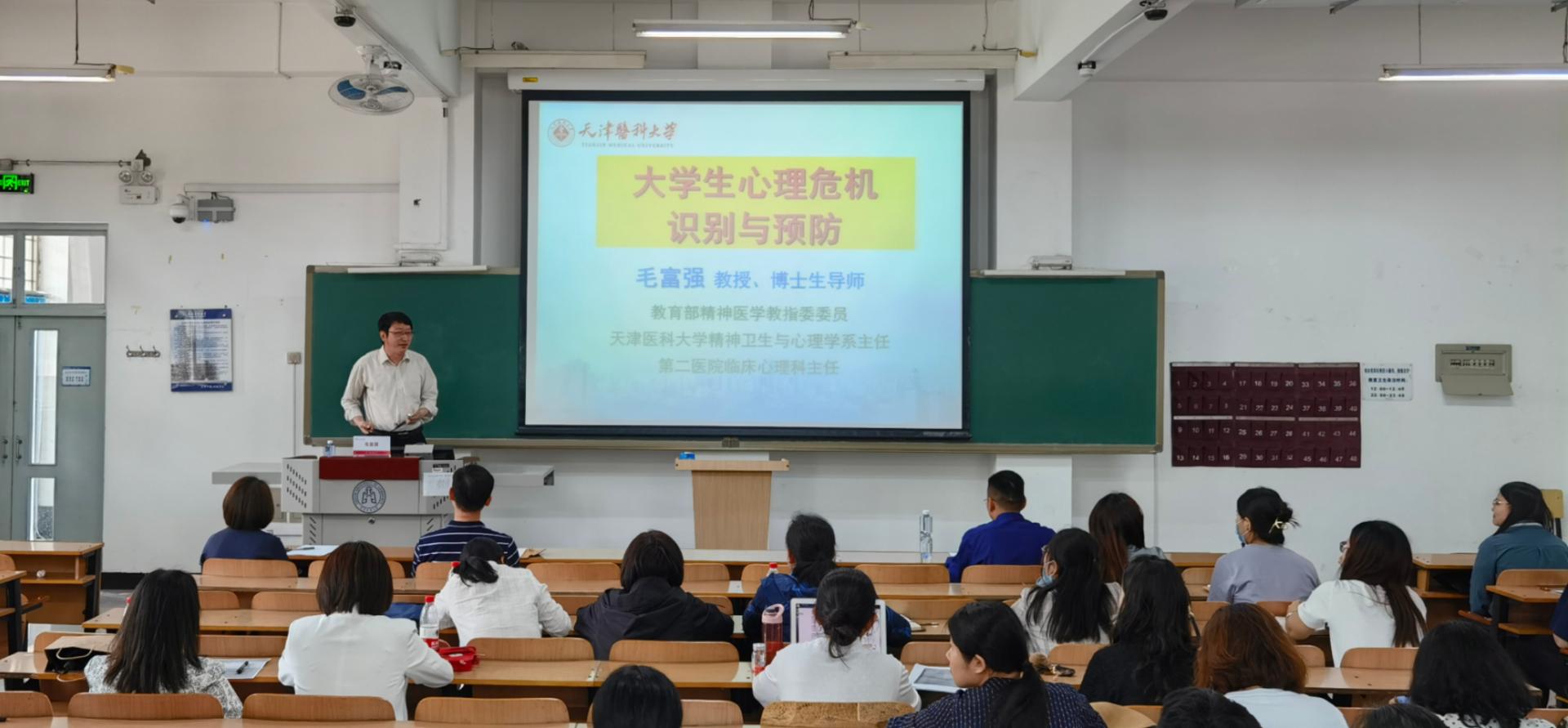 5月12日下午,学生处邀请天津医科大学博士生导师毛富强教授,在三教118室为学工队伍作“大学生心理危机识别与预防”专题培训。
