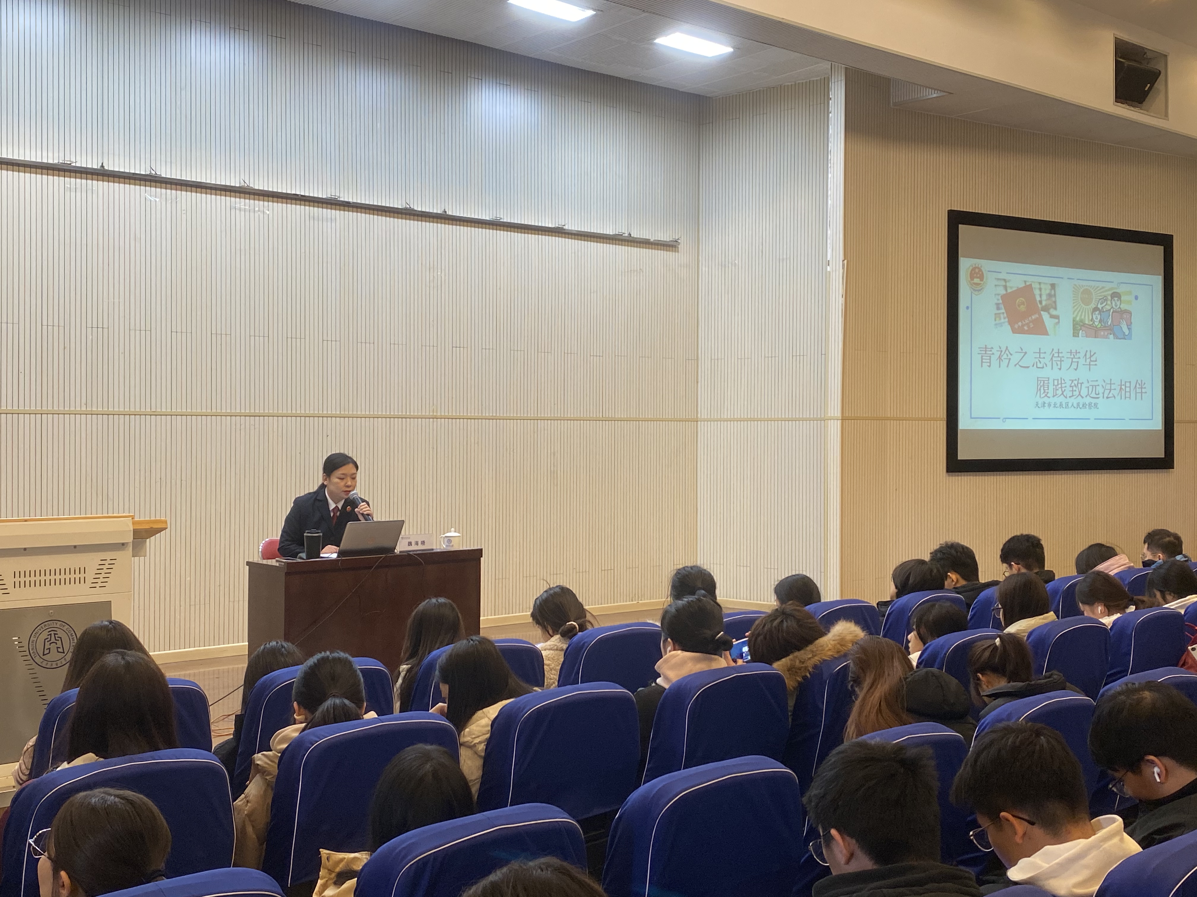 12月4日下午,党委学工部在七教报告厅举行“与法同行 护航青春”普法进校园主题讲座,天津市北辰区人民检察院一级检察官魏海晓担任主讲嘉宾,各学院200余名学生参加活动。