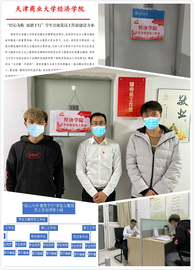 学生公寓是广大学生学习、生活、成长、沟通的主阵地,是加强学生党建和思想文化建设的重要场所。经济学院成立学生公寓党员工作站是深入学习贯彻习近平总书记在党史学习教育动员大会上重要讲话精神和学校党史学习教育动员部署会精神的具体行动,是适应新时期新形势加强和改进学生党建工作的新举措,其构建的“3+N”学生公寓党建工作新模式,使得思想政治工作进一步贴近学生、贴近生活、贴近实际,对于切实提升学生党组织的组织力、凝聚力、战斗力,推动解决学生最关心、最直接、最现实的利益问题,更好地引领和服务大学生成长成才具有十分重要的意义。