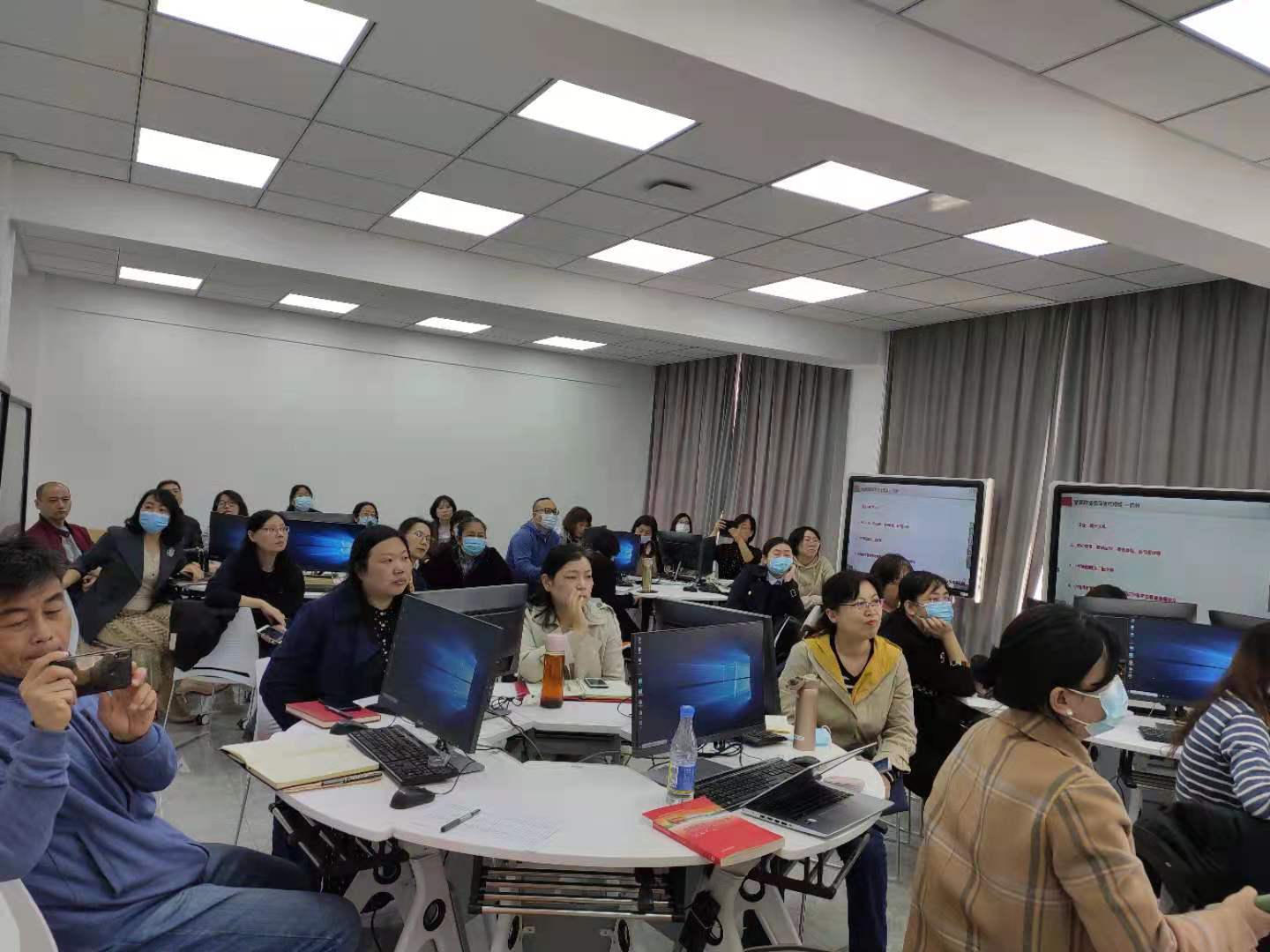 4月14日下午,教务处、财务处联合在1号教学楼302教室组织了第一批讨论式“智慧教室”使用培训,共有15个学院(教学部) 30多名老师参加培训。