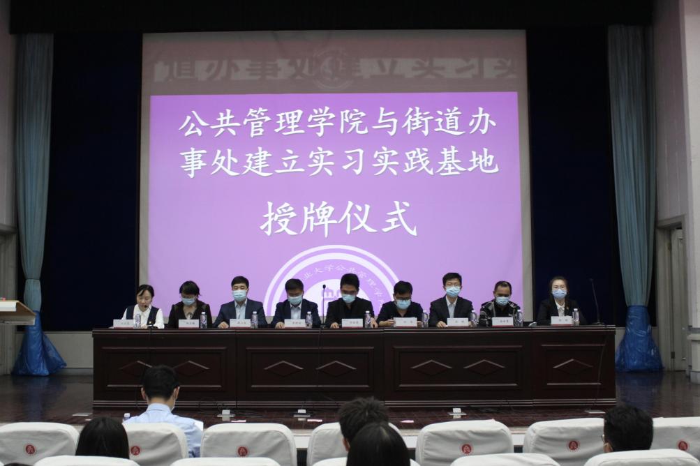 4月21日,公共管理学院与红桥区、北辰区4个街道办事处共建实习实践基地授牌仪式在学术交流中心举行。双环邨街道办事处、西沽街道办事处、咸阳北路街道办事处、芥园街道办事处和公共管理学院相关负责人、全体辅导员和230余名学生参加,院党委副书记次云波主持。