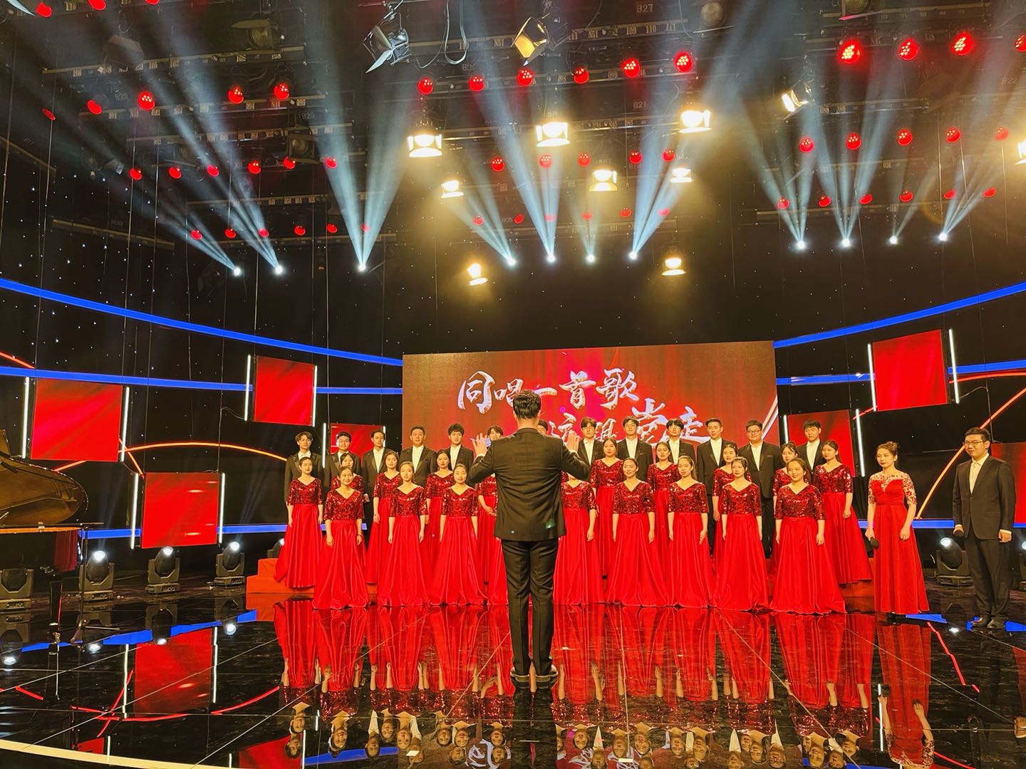 4月27日,按照市教育两委关于开展“同唱一首歌 永远跟党走”——庆祝中国共产党成立100周年群众性歌咏展演活动的工作要求,beat365官网星海艺术团合唱团分团作为beat365官网代表队,走进天津广播电视台演播厅进行了《不忘初心》红歌展演录制。同学们用悠扬的歌声表达了对中国共产党成立百年的祝福,抒发了青年学子对党、对祖国的热爱之情。本次录制将制作成专题节目于5月中旬在天津电视台文艺频道播出。
