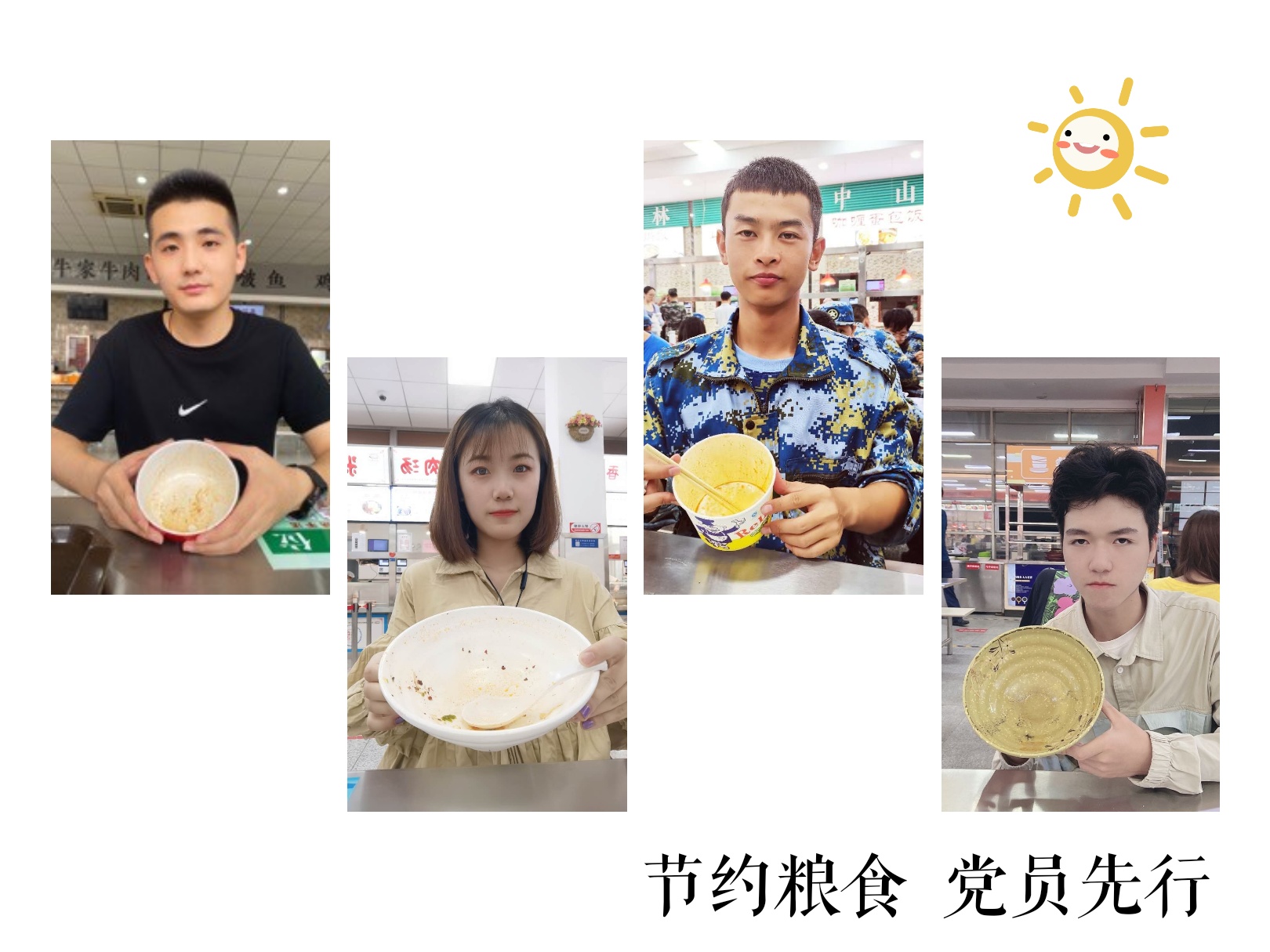 各学生党支部组织全体学生党员、积极分子、申请人共计471人,认真学习领会习近平总书记有关厉行节约、反对浪费重要指示精神,大力宣传浪费可耻、节约为荣的思想观念和文明用餐、杜绝浪费的消费理念,引导大家秉承勤俭节约的优良家风。各位学生党员、积极分子积极响应“记录‘光盘’最美的你”活动,在用餐结束后纷纷拍摄“光盘”照片,记录“光盘”时刻最美的自己,用实际行动带头践行“光盘行动”,成为引领带动身边同学朋友的新风尚。