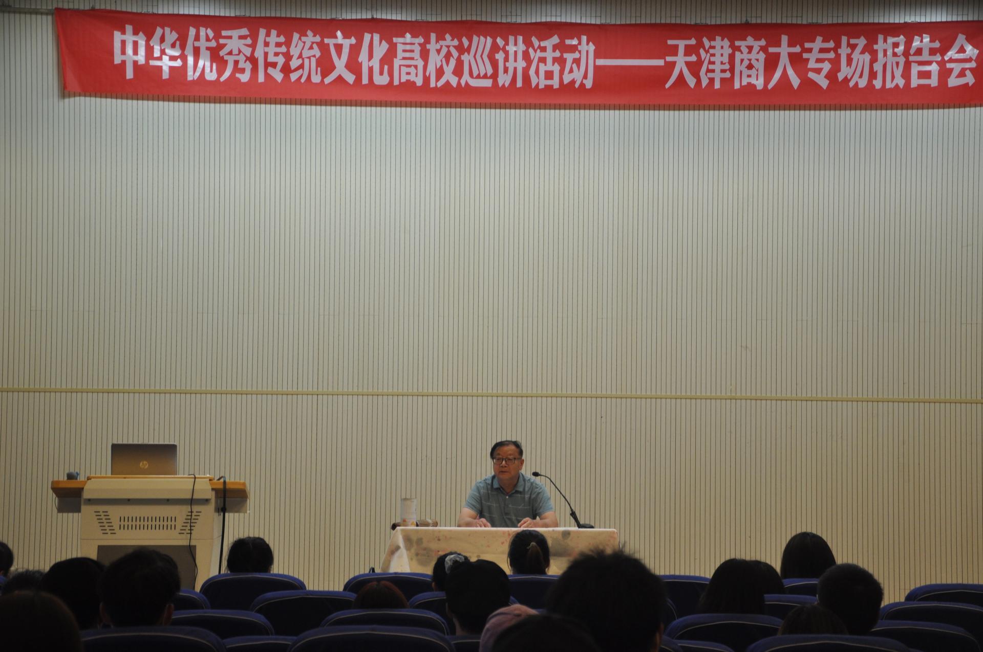 9月16日下午,天津市中华优秀传统文化巡讲活动在beat365官网七号教学楼报告厅举行。中国书法家协会会员、中华诗词学会会员、北京启功艺术研究会顾问陈启智老师应邀作报告。党委学工部相关老师及各学院师生代表百余人参加。