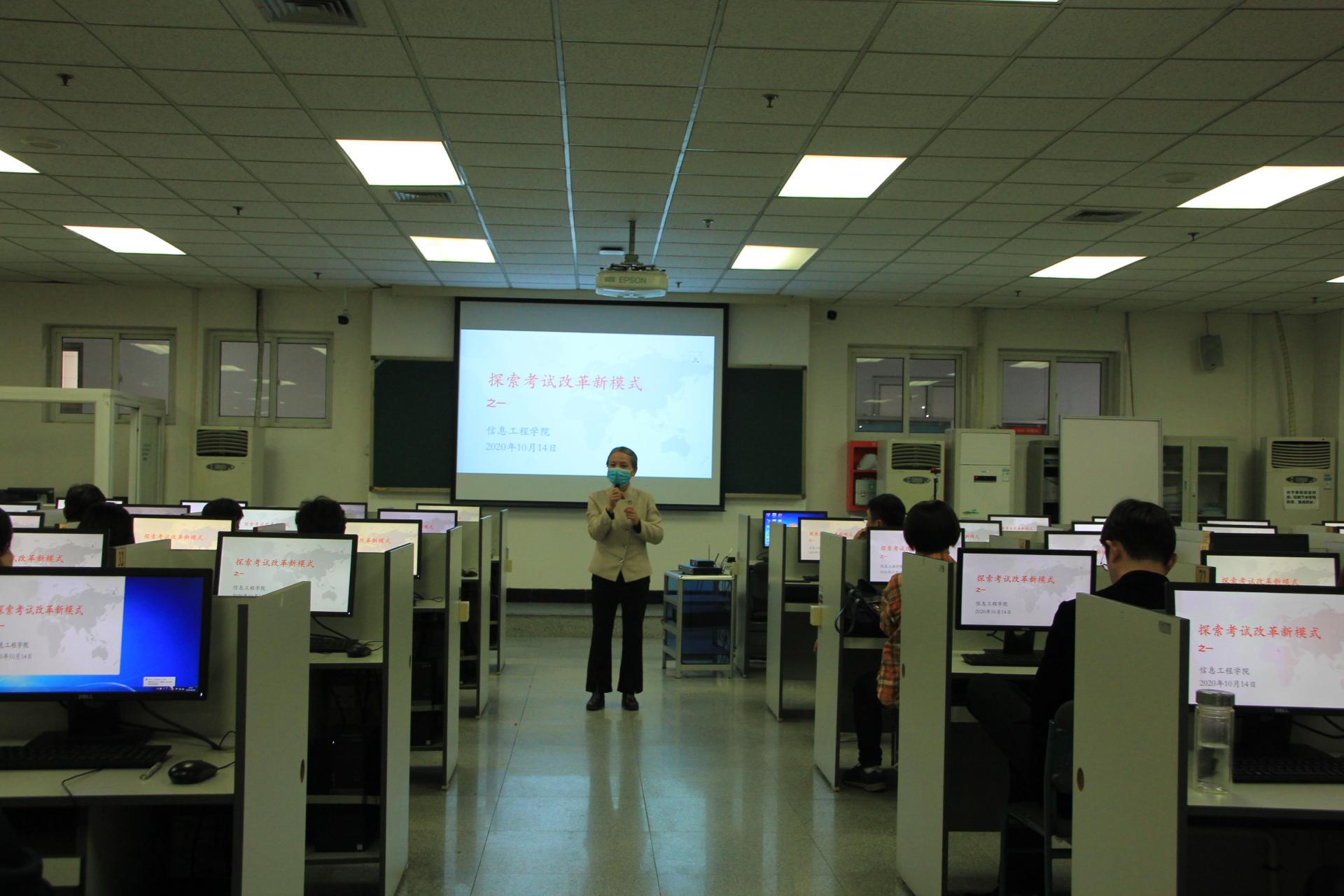10月14日下午,信息工程学院领导班子和全体教师齐集一堂,在信息交流中心302机房举办“探索考试改革新模式”研讨会。教学质量监控中心主任潘旭华、教务处副处长张陶然、其他学院部分老师受邀参会。研讨会由学院副院长姜书浩主持。