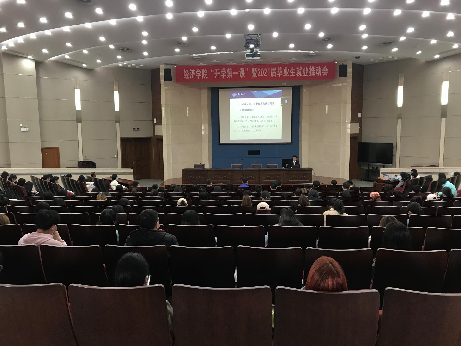 10月15日下午,经济学院在图书馆三楼国际报告厅召开“开学第一课”暨2021届毕业生就业推动会。院长梁学平、教学秘书、全体毕业班辅导员、2021届全体毕业生参加会议。会议以线上线下相结合方式开展。