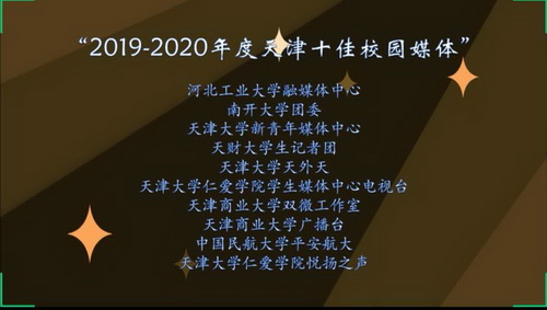 在第五届天津年度十佳校园媒体巡展获奖名单中,beat365英国官方网站双微工作室、beat365英国官方网站广播台荣获“2019-2020天津十佳校园媒体”,双微工作室微信负责人郭小会和微博部部长赵晓凡荣获“2019-2020天津十佳校媒人”。
