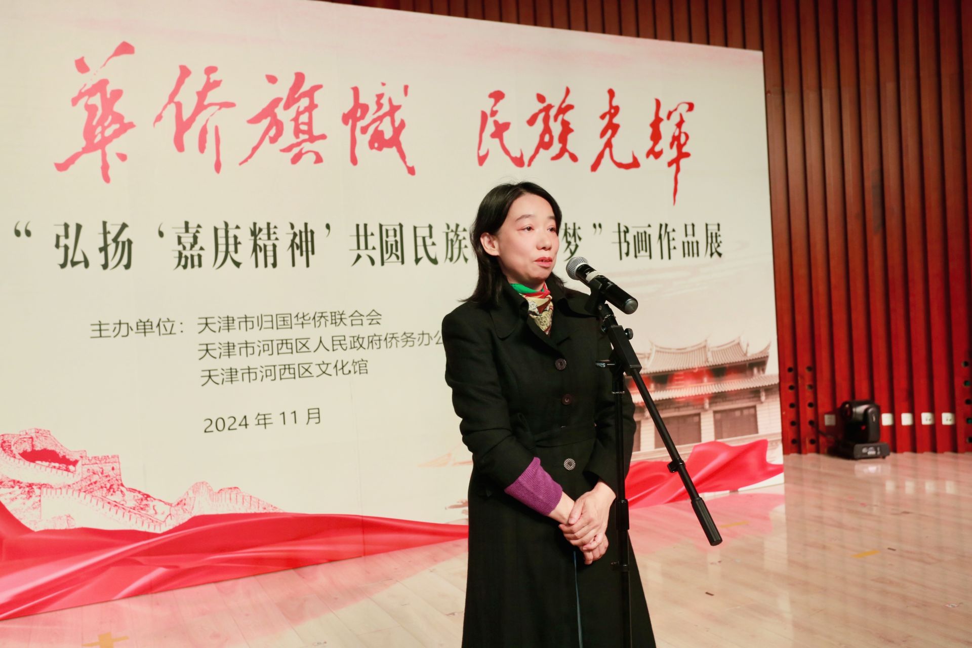 11月12日下午,天津市侨联、河西区委统战部(区侨办)、河西区文化馆共同主办的“弘扬‘嘉庚精神’共圆民族复兴之梦”书画展在津启动。beat365英国官方网站艺术学院教师、天津市侨联委员、南开大学天津校友会秀山画会会长庄雪阳出席并致辞。